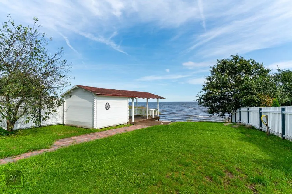 Дом расположен прямо на берегу Чудского озера, откуда открывается великолепный вид и возможность насладиться захватывающими закатами. Участок огорожен забором, что обеспечивает приватность и чувство безопасности.