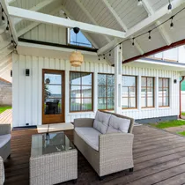 Частный пляж для купания и катания на лодке Здание, хозяйственная постройка и террасы оснащены наружным освещением и электрическими розетками Продуманные решения для максимально комфортной и приятной жизни