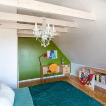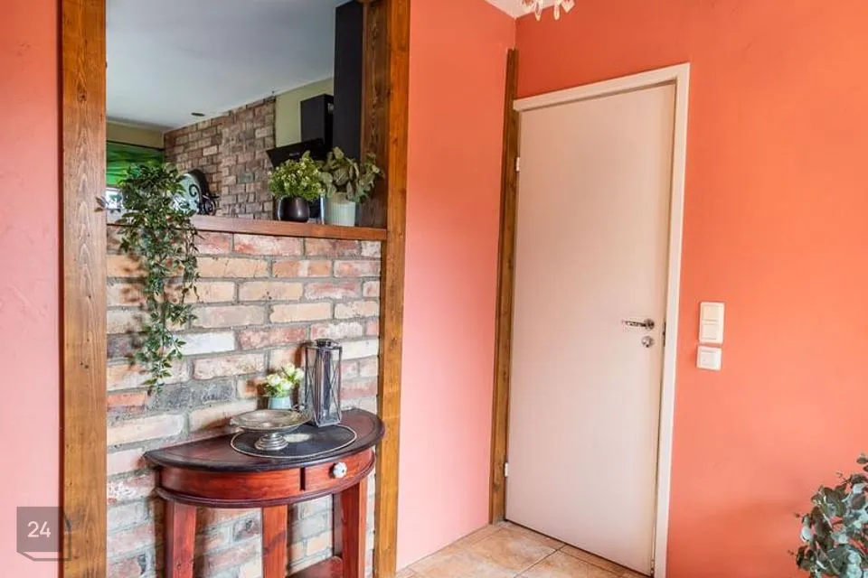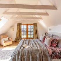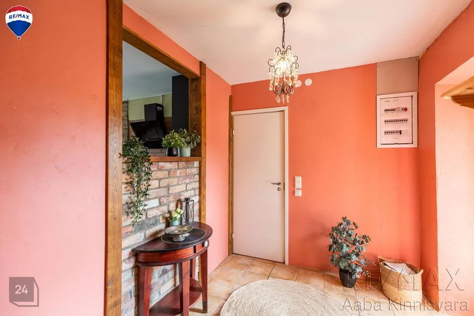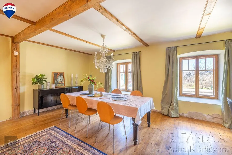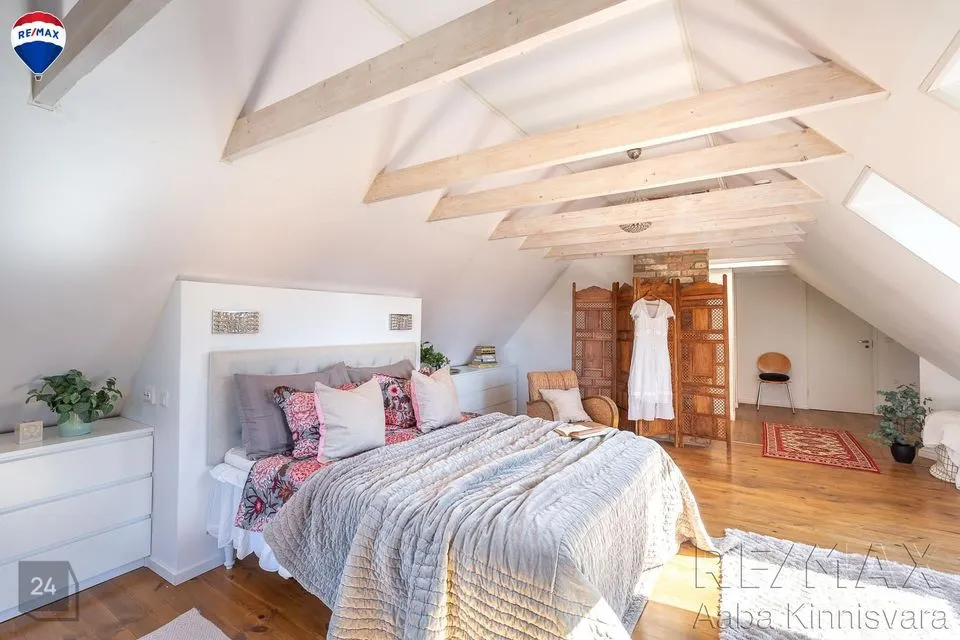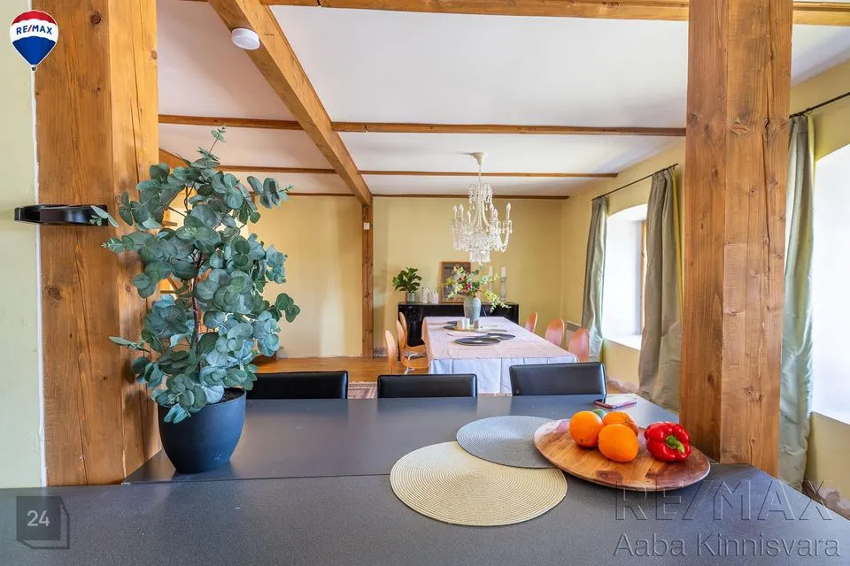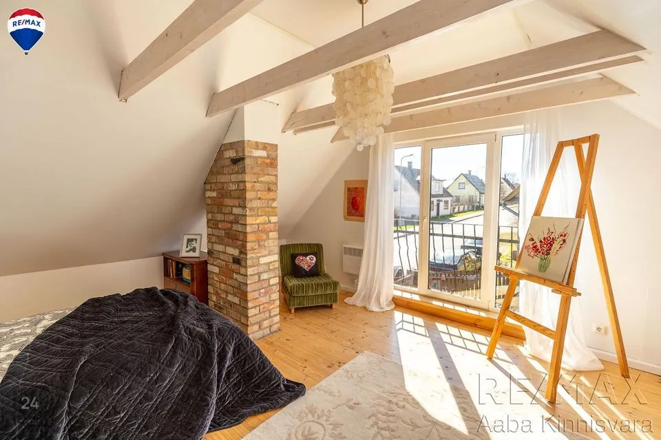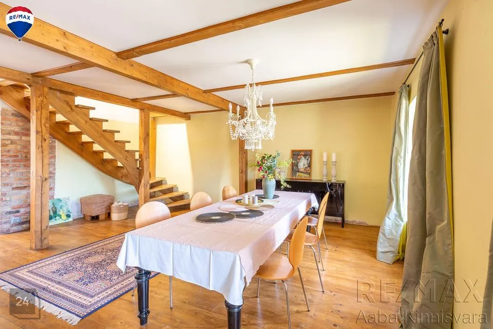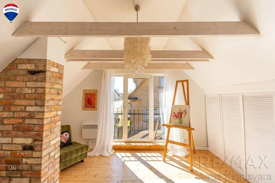 Põrandad on naturaalsed ja seintel lubikrohv, massiivsed puidust laetalad, punane tellis, looduslikud värvid ja materjalid on siinsed märksõnad.