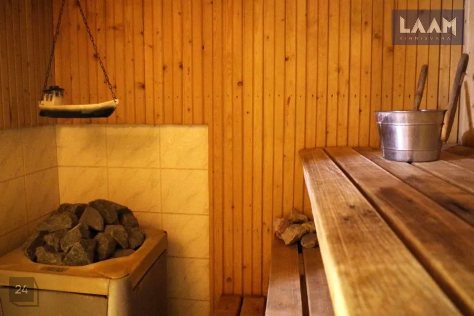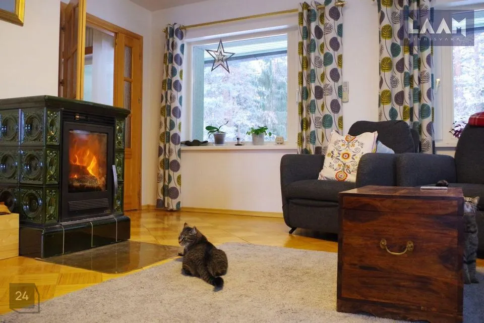 Keldrikorrusel sauna eesruumis asub õhkkütte pelletkamin, mis kütab läbivalt kolme korrust.