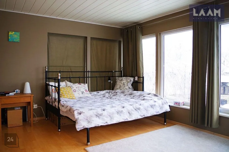 Sisehoovi poole, vaatega aeda jääb suurte, maast laeni akendega magamistuba.