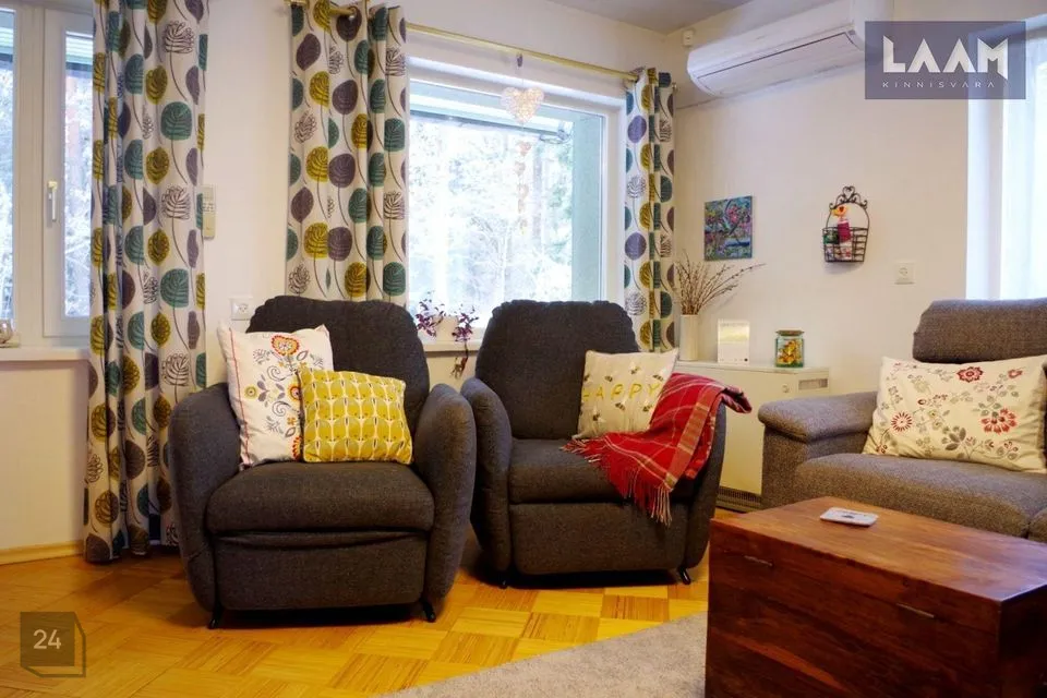 Otepää kesklinnast jalutuskäigu kaugusel, vaikses tänavas, ühel pool tänavat eramud, teisele poole jääb ilus metsapark.