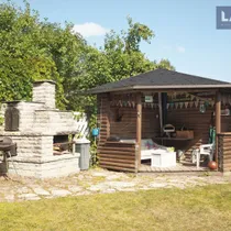 Krunt on ümbritsetud aiaga-sepisväravad, aias on grillinurk looduslikust paekivist suitsu,-ja sašlõkiahjuga. Lisaks on aias varjualune autole ( saab ka parkida maja ees).