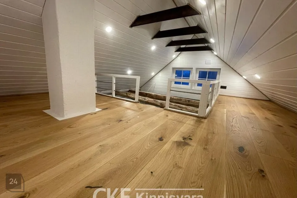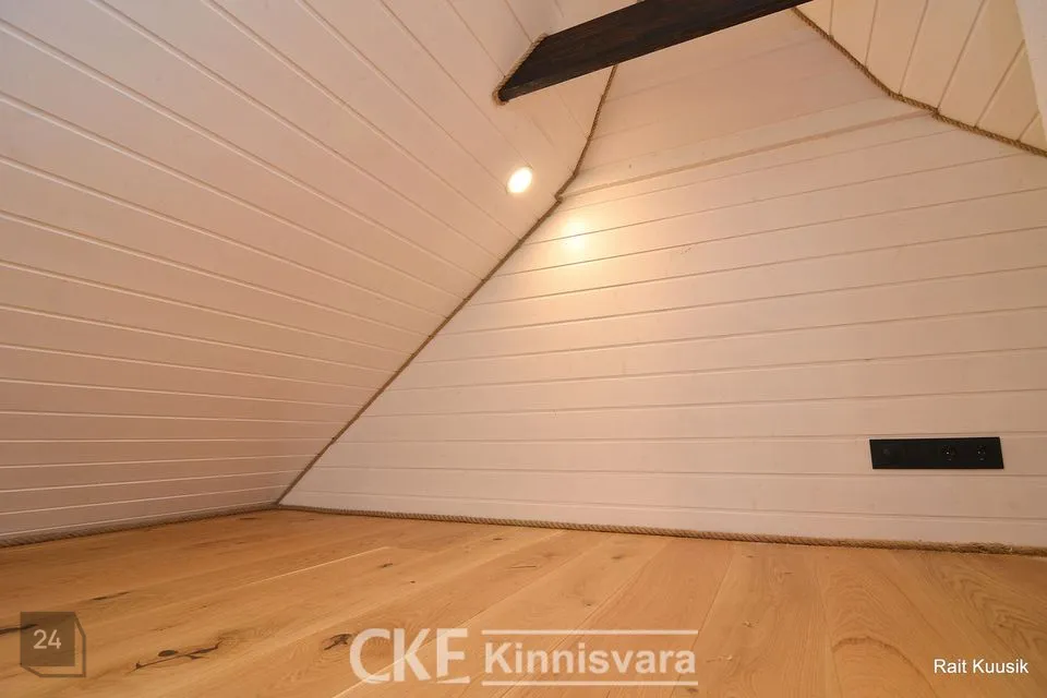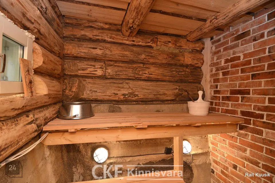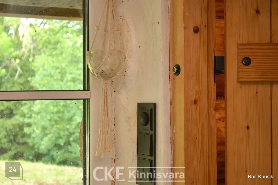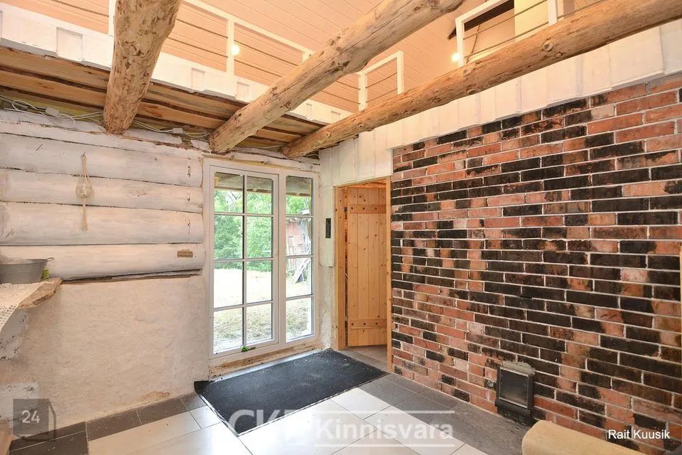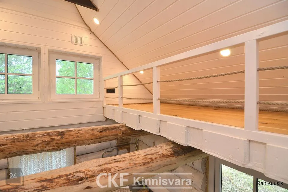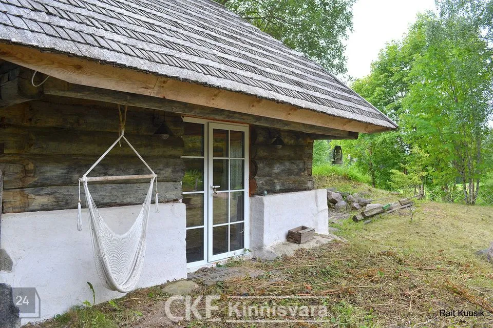 Kinnistul asuv väike hubane palkmaja on ehitatud 2015 kuni 2016.a. Kompaktse ruumijaotusega majas on aatriumiga elutuba, katusealune magamislavats neljale inimesele, pesuruum ja leiliruum. Elutoast pääseb lõunapoolsele küljele avanevale väliterrassile. Leiliruumi köetakse Harvia puidukerisega, millel on veessoojenduspaak. Elutoas on paigaldamiseks uus puuküttega kamin-ahi. Õhksoojuspumba paigaldamise valmidus.