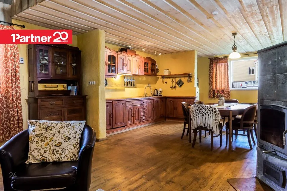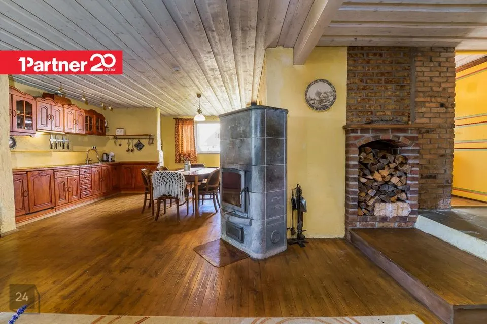Avatud köök-elutuba loob ideaalse keskkonna pere koosviibimisteks ja külaliste võõrustamiseks. Elutoa keskmes trooniv soojust salvestav tulikiviahi toob ruumi hubasust ja loomulikku soojust. Köögis leidub täispuidust kvaliteetne mööbel, keraamiline elektripliit, nõudepesumasin ja külmik - kõik vajalik igapäevaseks toimetamiseks.