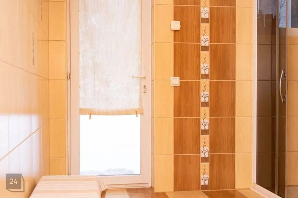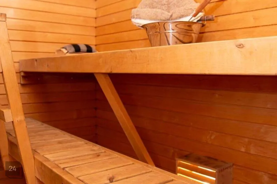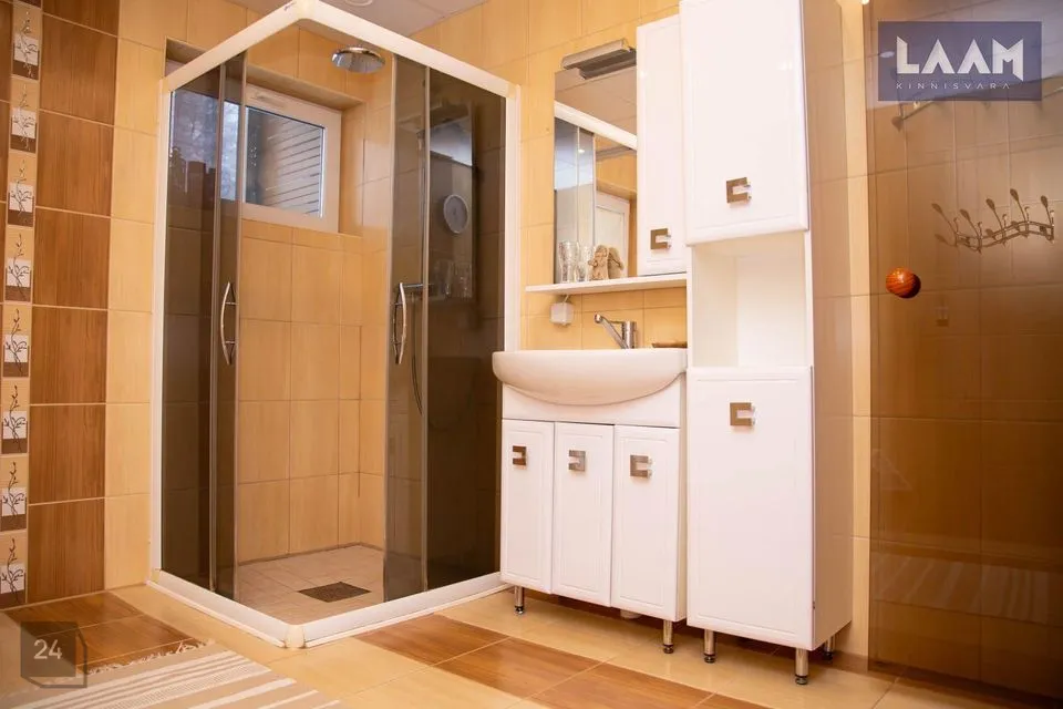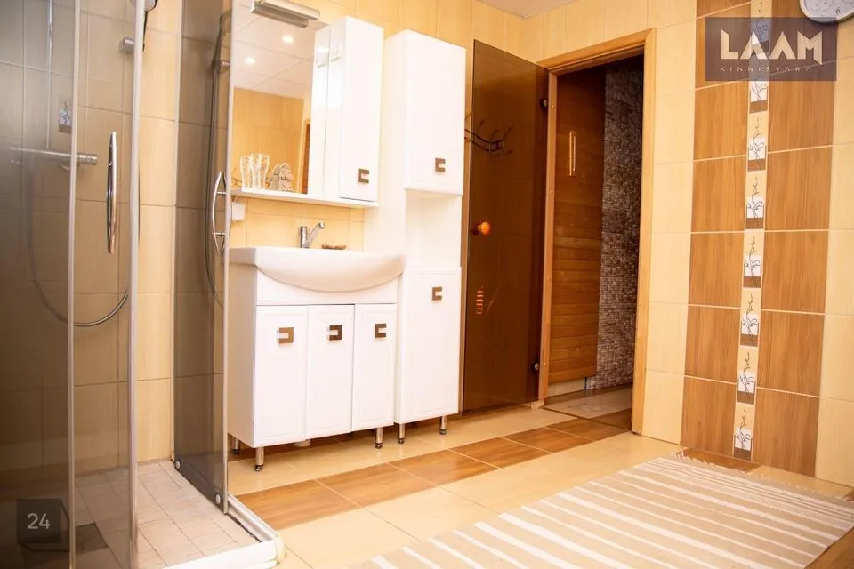 Eesruumi kõrval on eraldi suletud majapidamisruum pesumasinaga ja riiulitega. Pesuruum on möbleeritud ja duššinurgaga. Leiliruumis hoolitseb leilimõnude eest Harvia puukeris.