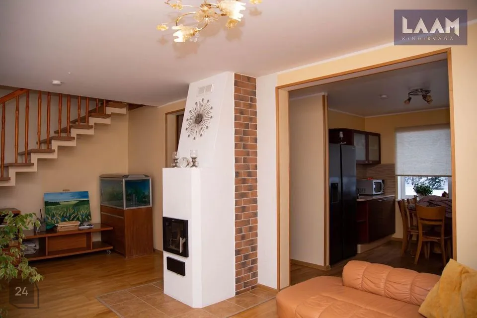 Majja sisenedes jõuate läbi esiku liikudes elutuppa, mis oma avar ja valgusküllane. Siin on kõik vajalik, et pärast päevatööd või mõnusal nädalavahetusel koos pere ja sõpradega ühiselt aega veeta. Tuba ilmestab ja loob meeldiva atmosfääri kamin, mis oma elava tulega lisab soojust ja hubasust. Elutoast pääseb otse avarale terrassile, kus saab mõnusaid grilli – ja suveõhtuid nautida. Elutoa kõrval on hästivarustatud ja täissisustusega köök koos söögilauga. Köögis on olemas integreeritud pliit, ahi, õhupuhasti ja lisaks suur külmik, nõudepesumasin ja kuumaõhufritüür. Köögil on kaks akent, mis muudavad selle valgusküllaseks.