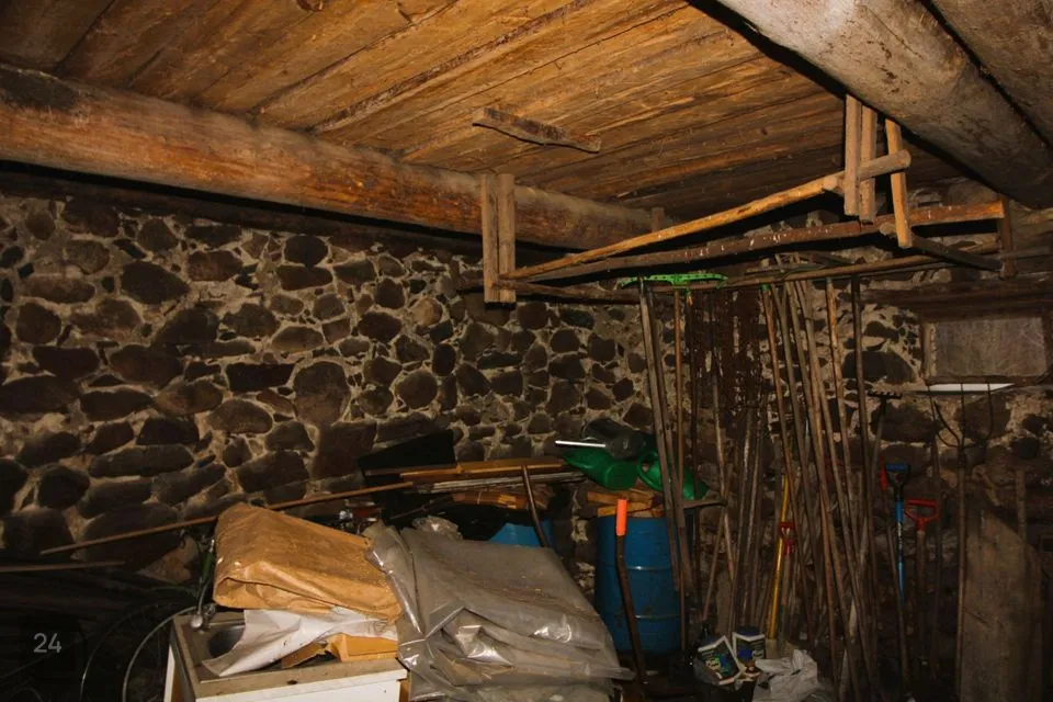 Köögist otse garaaži ja sealt ülesse heinaküüni. Garaažil uued uksed.