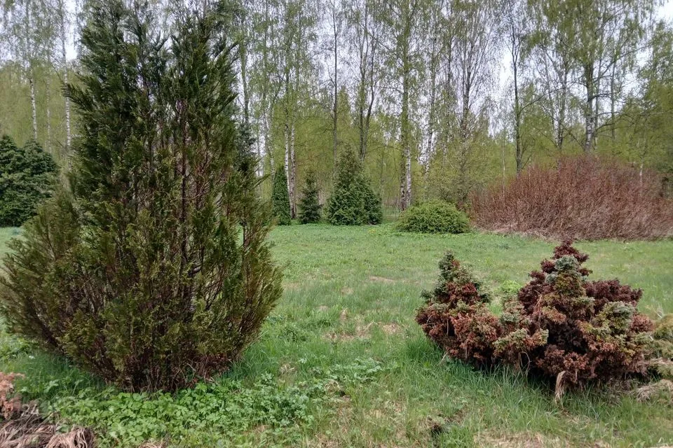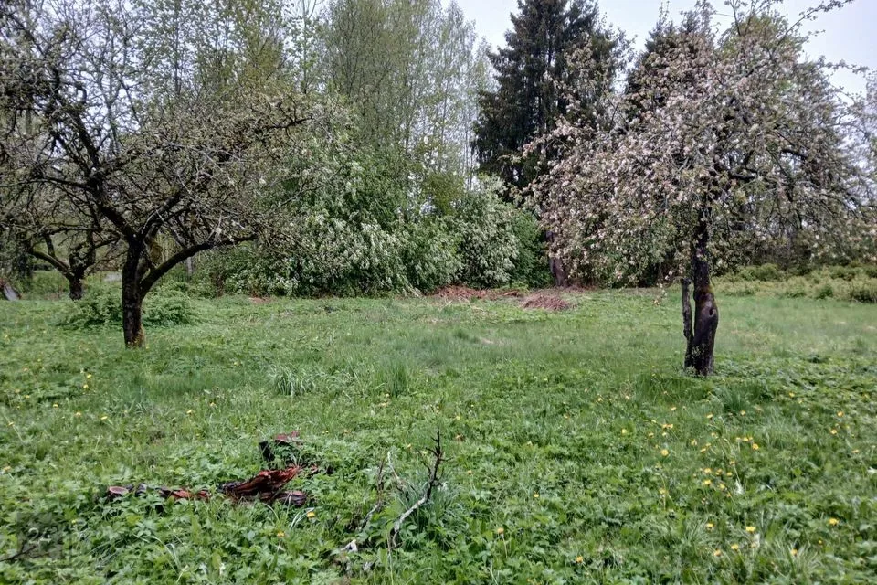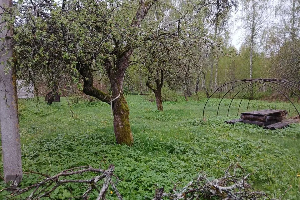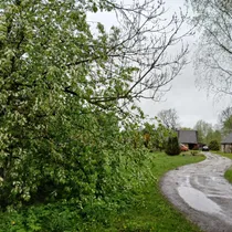 Kinnistul kõrged põlispuud, palju õunapuid, põõsaid, lilli