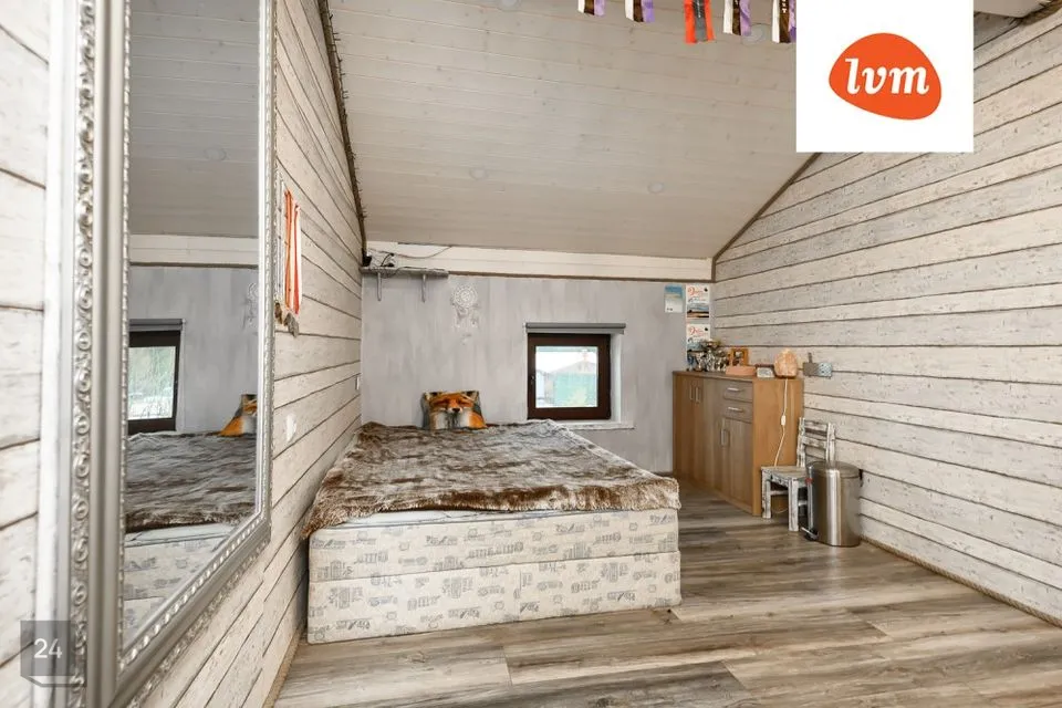 Maja ühes tiivas on peamine suur magamistuba+vann, saun ja pesuruumid ning majapidamisruum.