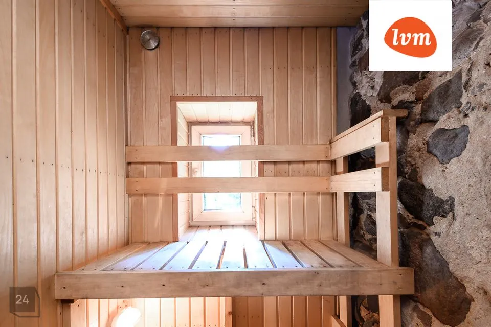 Umbes viis aastat tagasi ehitati välja kaasaegne saun, wc ja pesuruum – ideaalne mõnusateks õhtuteks pere või sõprade seltsis. Vesi tuleb salvkaevust hüdrofoori abil ning kanalisatsioon on lokaalne.