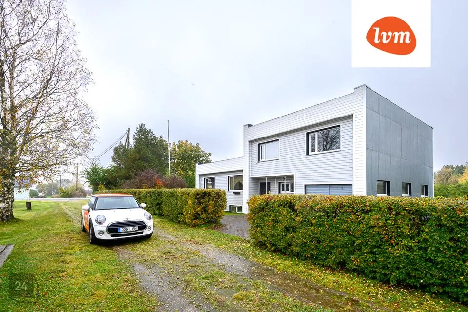 Kahekordne, omanäolise planeeringuga maja, kus alumisel korrusel on avar elutuba, köök, esik. Ruumikas garaaž ja tuba, mis sobib ideaalselt töötoaks või kontoriks. Tualet ja duširuum. Eraldi väljaehitamata saunaruum.