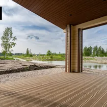 Terrassilt õhtupäikesega vaade tehisjärvele