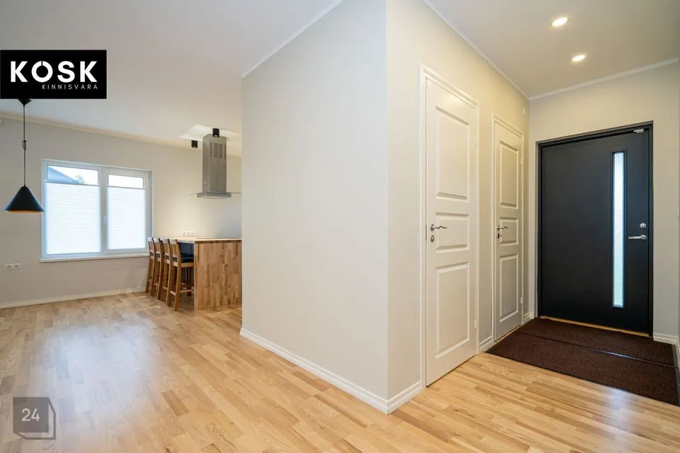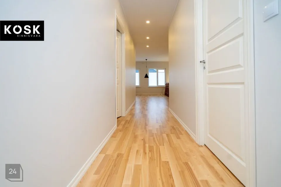 Siseviimistluses on kasutatud tammeparketti, majas on põrandaküte kogu ulatuses – hubane ja energiatõhus lahendus.