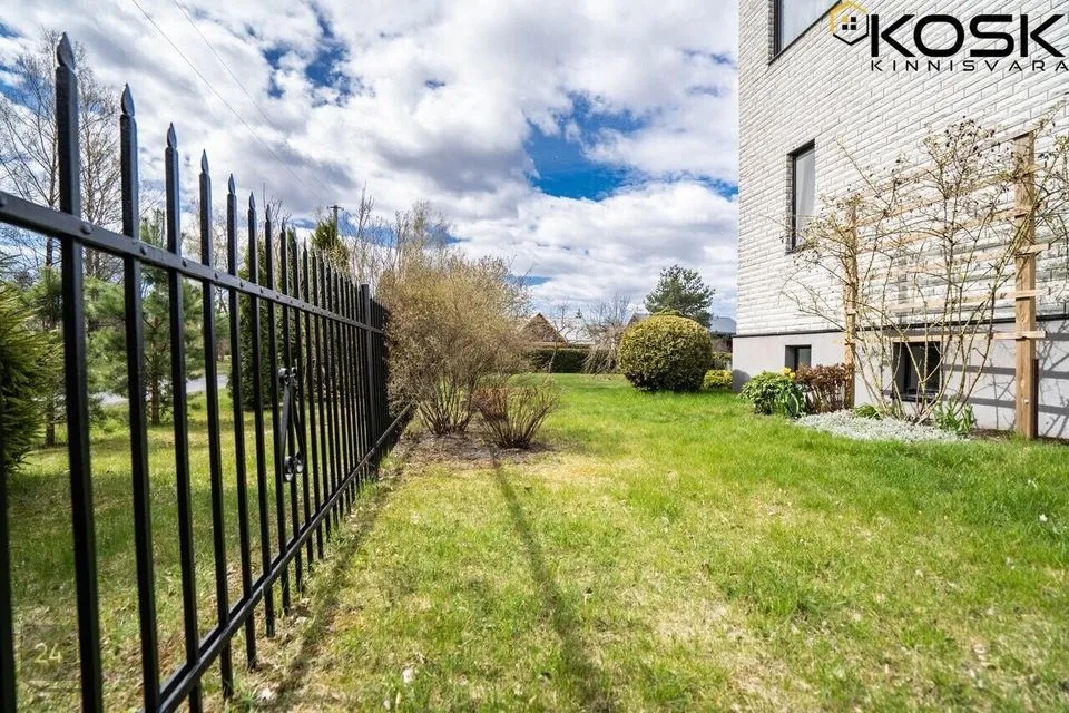 Kinnistu on hoolega haljastatud ja piiratud käsitsi valmistatud raudaiaga.