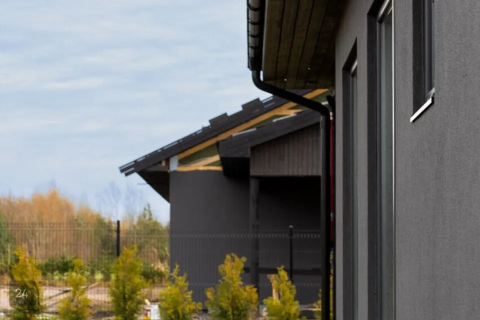 - Katus: Tehases toodetud fermid, tuuletõkkekangas, 32 mm tuulutusroov, roovitus ja must kivikatus.