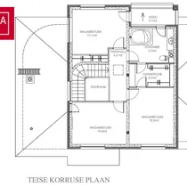II korrusel paiknevad trepihall, 3 magamistuba, garderoob, vannituba/wc ja rõdu.
