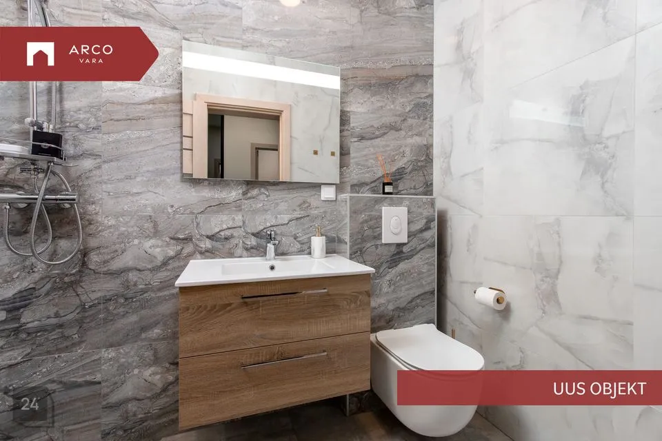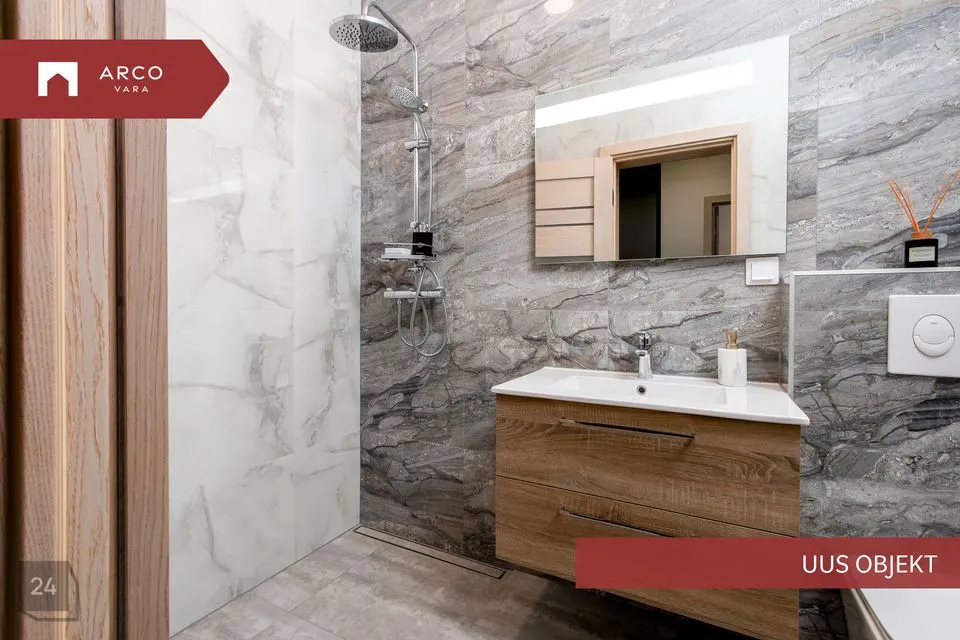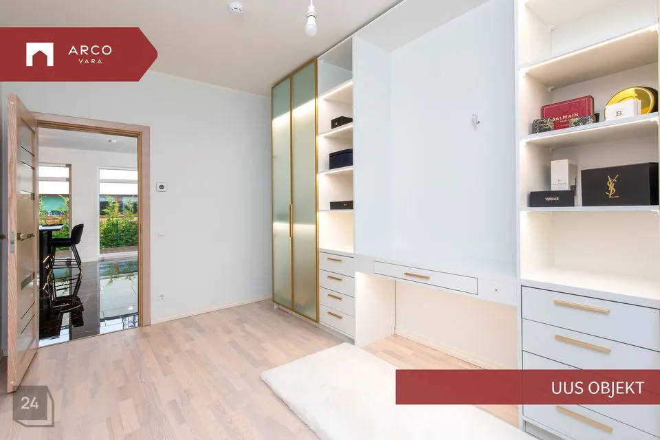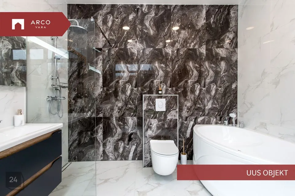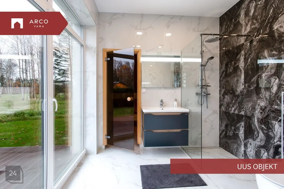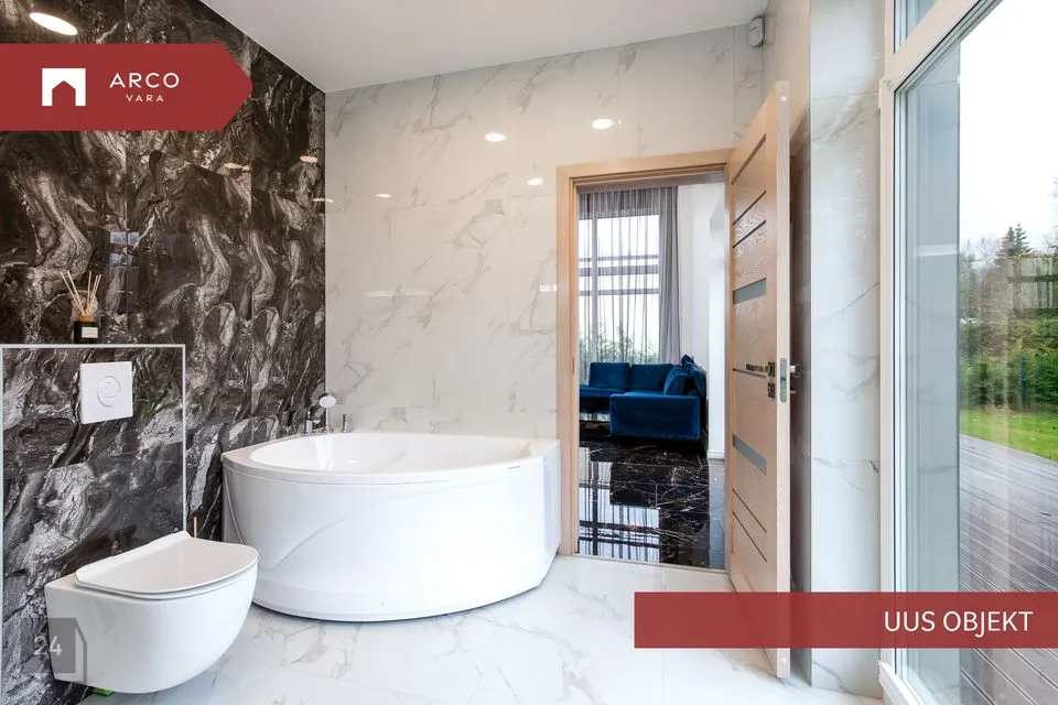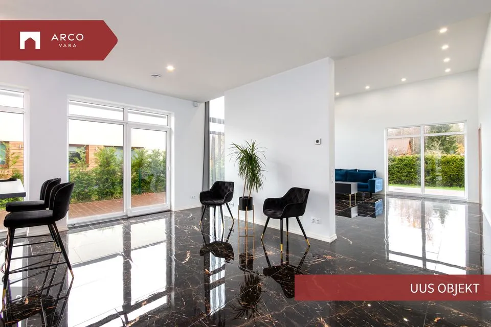 Maja ruumiline planeering jagab loogiliselt sotsiaalse ning privaatse ala, avatud köök-elutoa kõrvale avaneb terrass, moodustades loomuliku jätku siseruumile, lisaks ühes heas majas peab olema kaks tualett-pesuruumi ja siin nii on. Päevavalgus liigub läbi suurte klaaspindade, tuues esile elutoa ruumikõrguse, mis omakorda koos eksklusiivse siseviimistluse ning disainköögimööbliga tuletab igapäevaselt omanikule meelde, et tal on imeline kodu. Mugavust lisavad eritellimusel esikukapp ning garderoobsüsteem magamistoas, samuti on pesuruumid kõige vajalikuga sisustatud. Elukvaliteeti muutvaid detaile majas jagub, kõike kuulutusse ei mahuta, seega tutvustame neid Teile kohapeal. Ühe lausega, see kodu peegeldab juba ukselt sisse astudes soojust, rahu, luksust ning kvaliteeti.