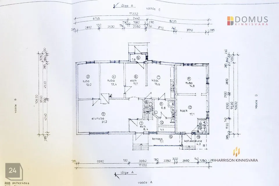 • 3 tuba, köök, tualett, duširuum, lisaks üks ca 32 m² suurune tuba.