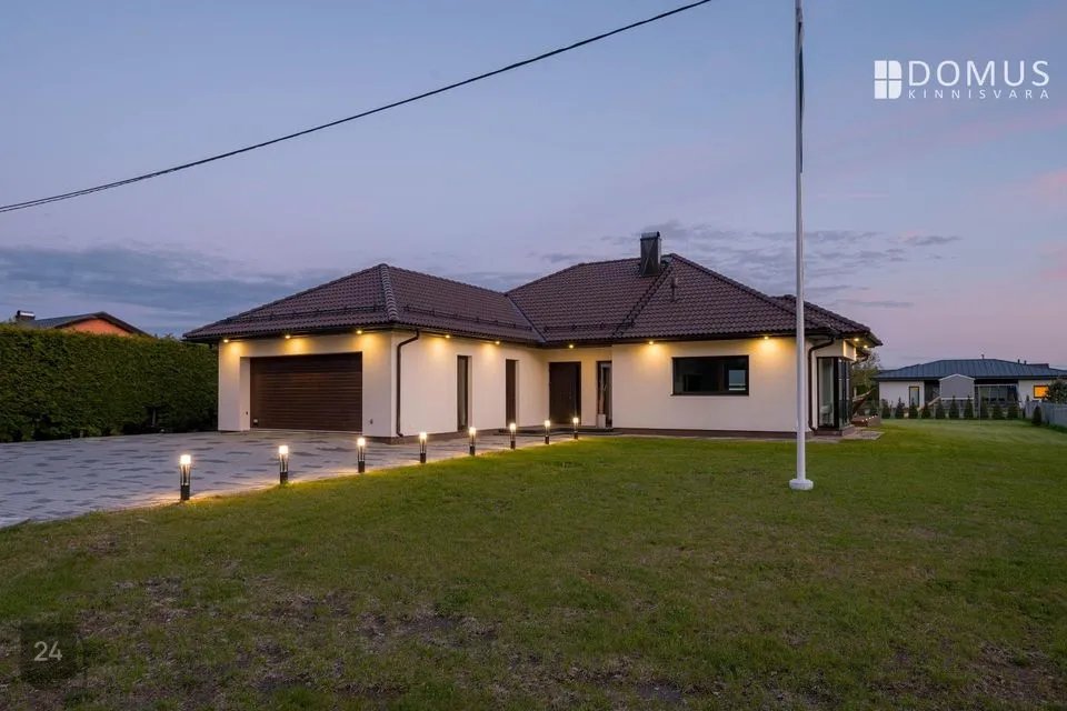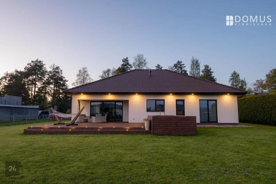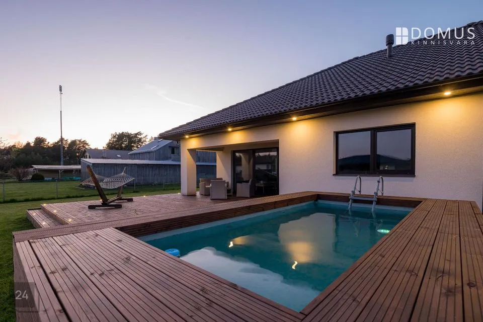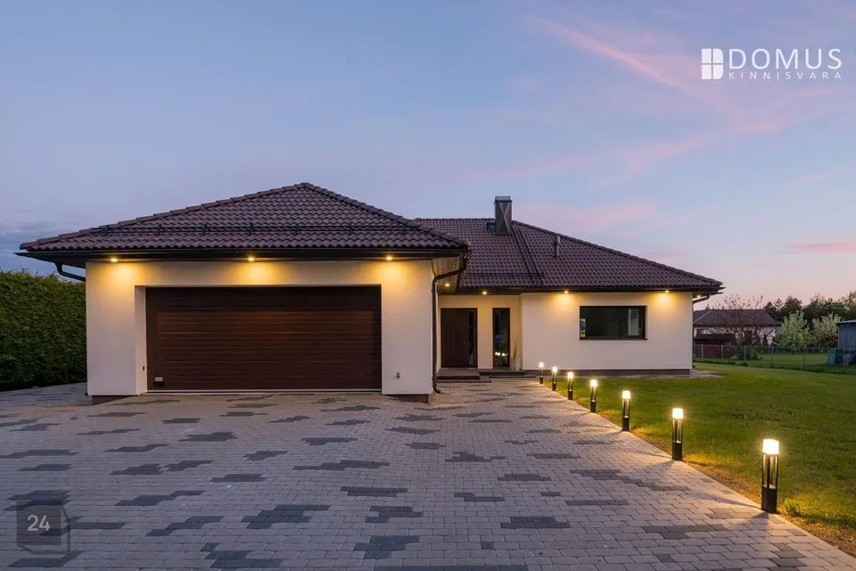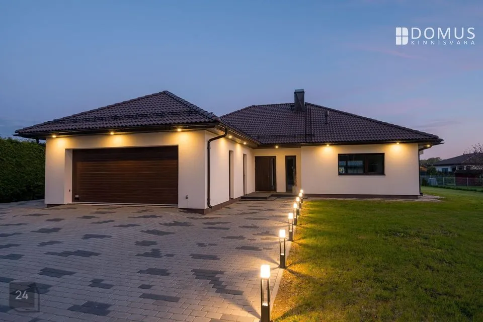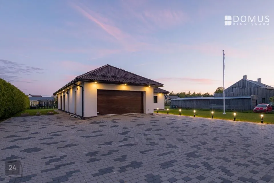MAJA – 2023 a. ehitatud, kivikatusega 1 kordne, ökonoomne A energiaklassi kivimaja koos 2 kohalise garaaži, terrassi ja väikese basseiniga.