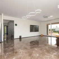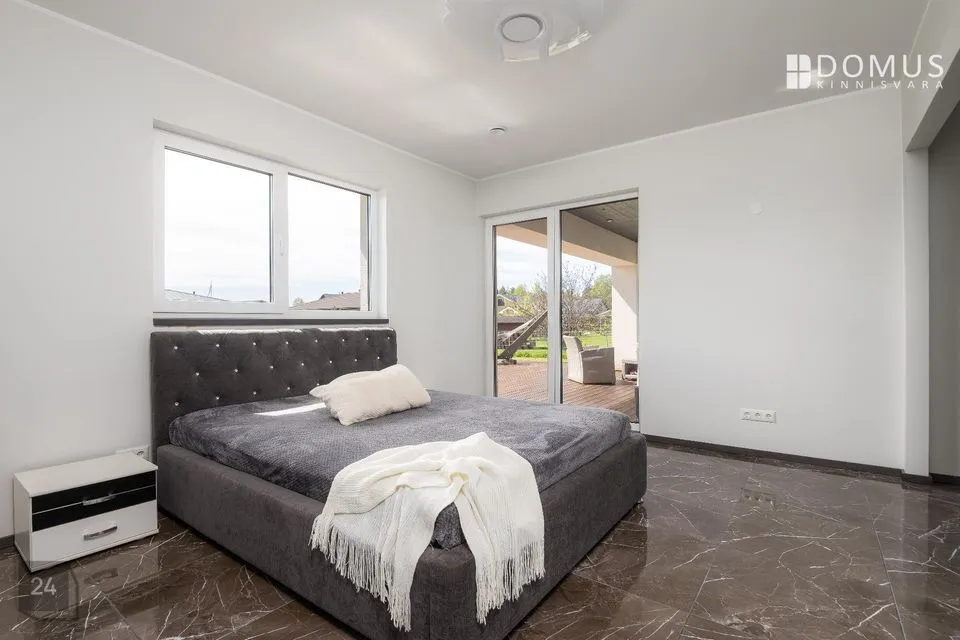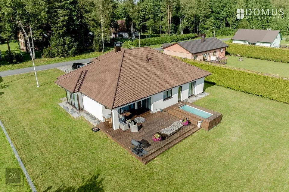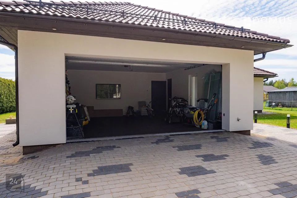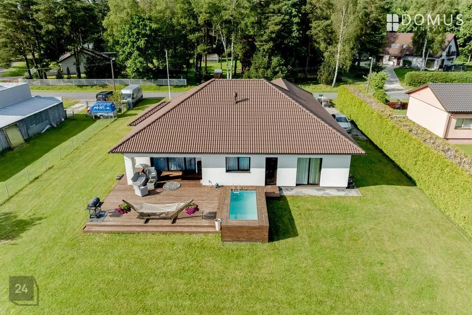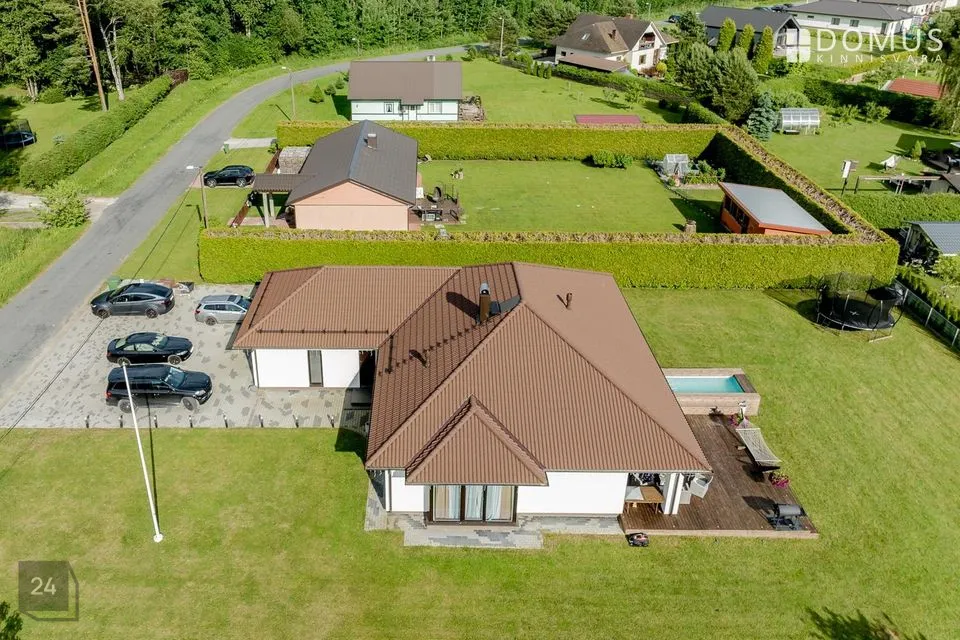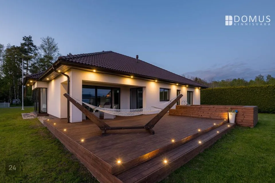 MAJA – 2023 a. ehitatud, kivikatusega 1 kordne, ökonoomne A energiaklassi kivimaja koos 2 kohalise garaaži, terrassi ja väikese basseiniga.