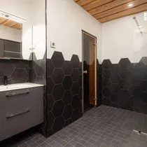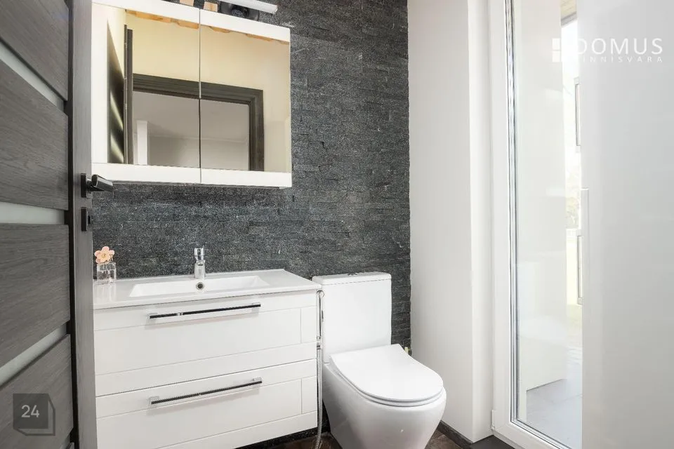 KÜTE – põrandaküte maasoojuspumba baasil, kõik ruumid on eraldi reguleeritavad. Sauna leiliruum on puuküttega, mida köetakse esiku poolt, mis tagab leiliruumis puhtuse ja mugava olemise. Lisaks on võimalus elutuppa paigaldada omale meelepärane kamin, valmidus on olemas.