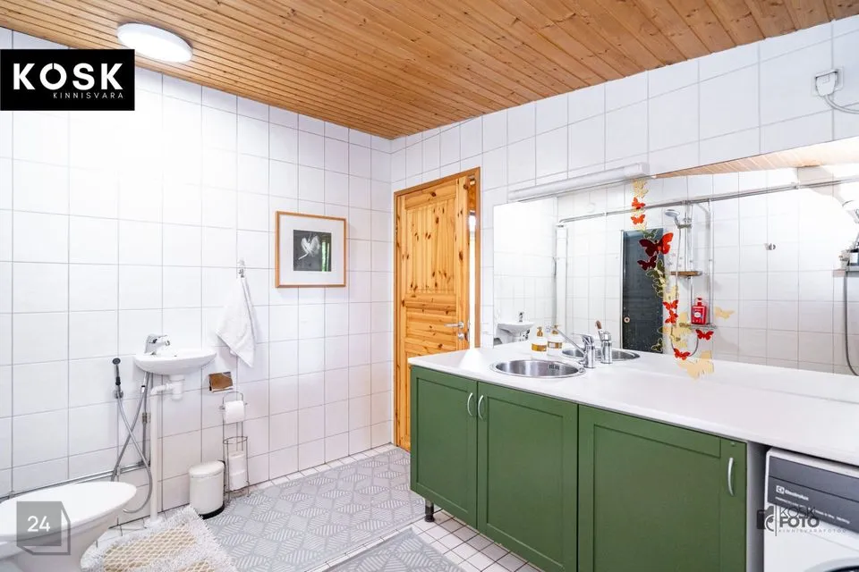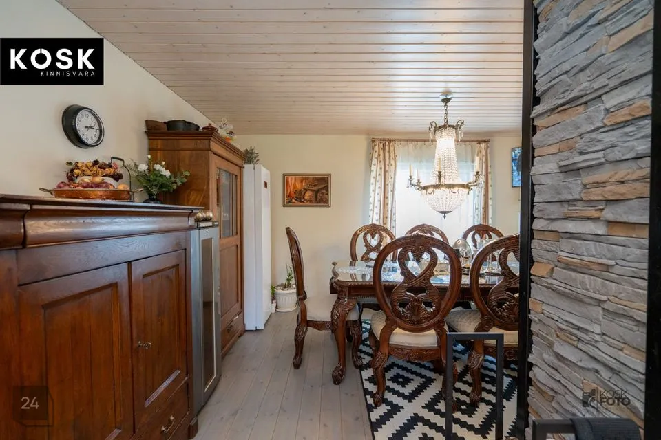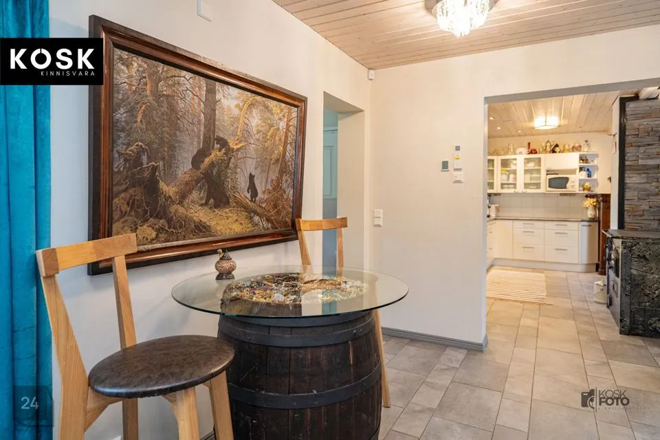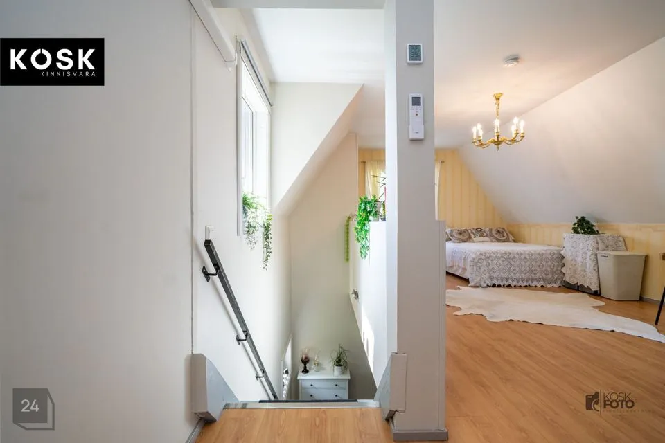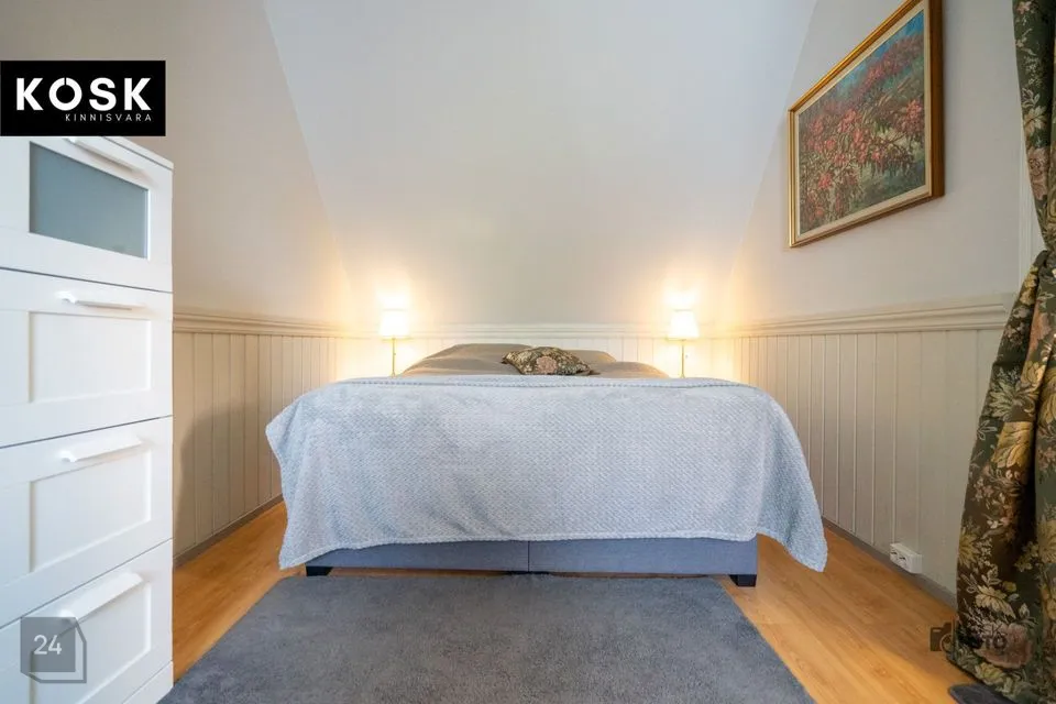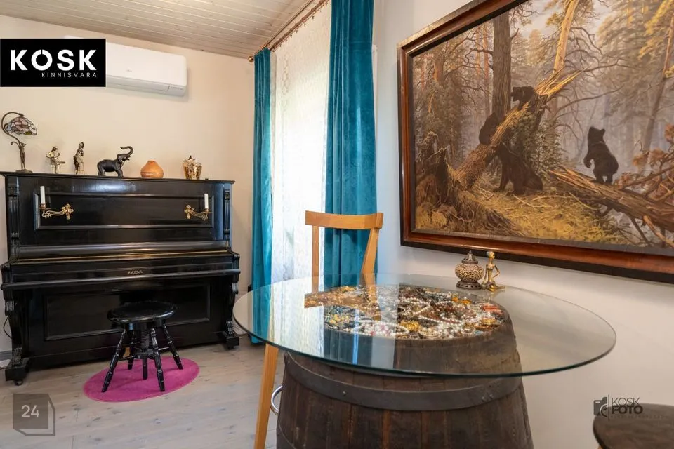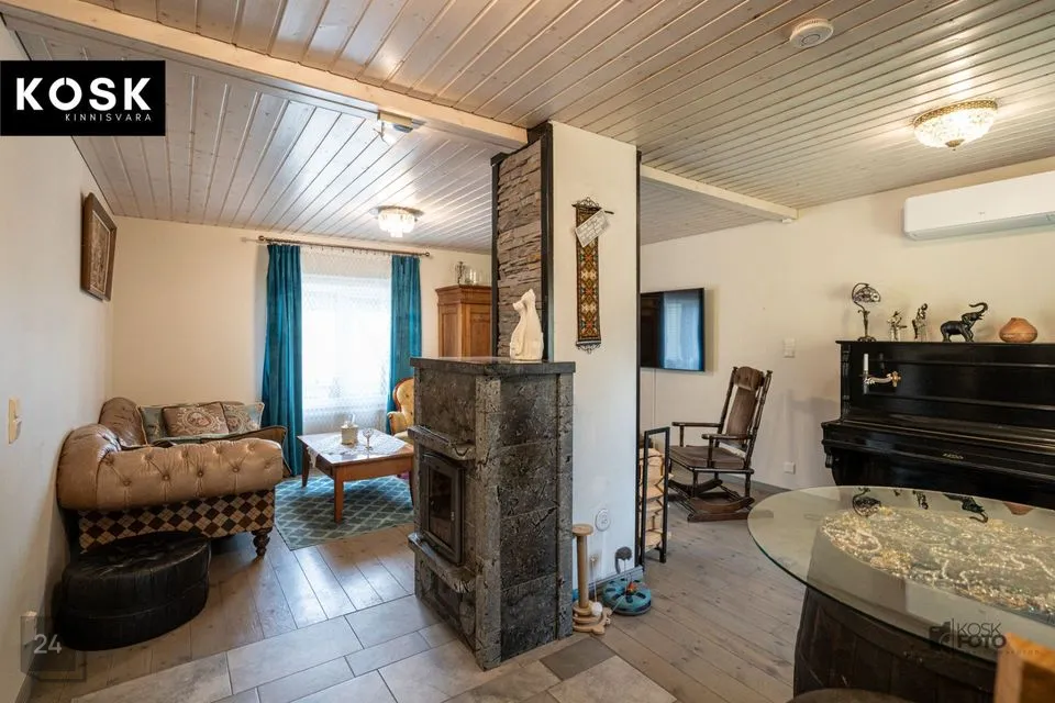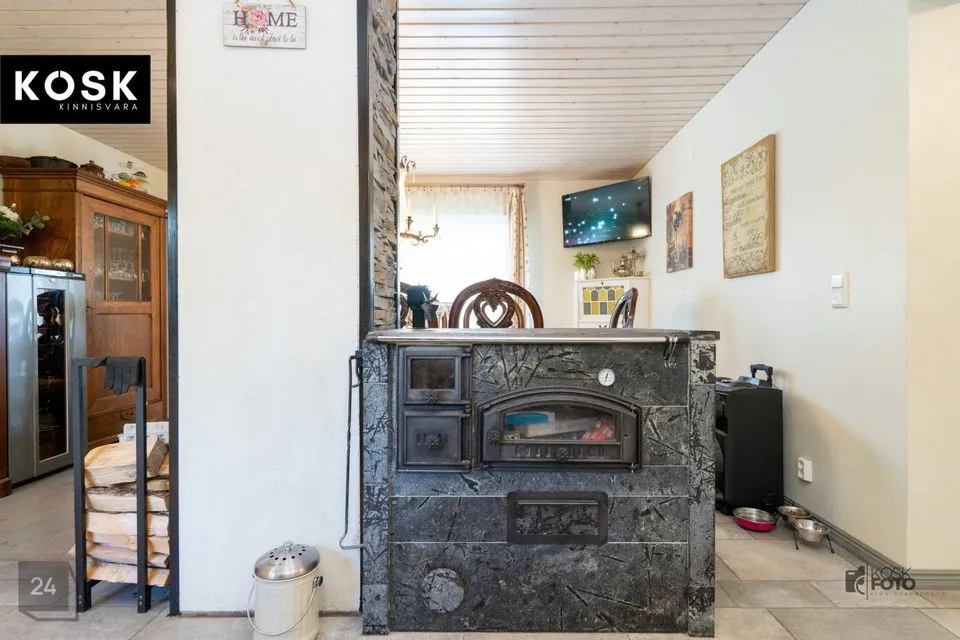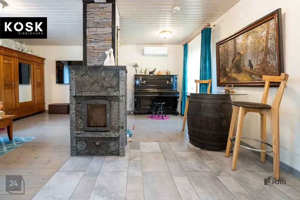 Ka siin on olemas kamin, õhksoojuspump ja elektriline põrandaküte – ideaalne koht külaliste võõrustamiseks või omaette puhkamiseks.