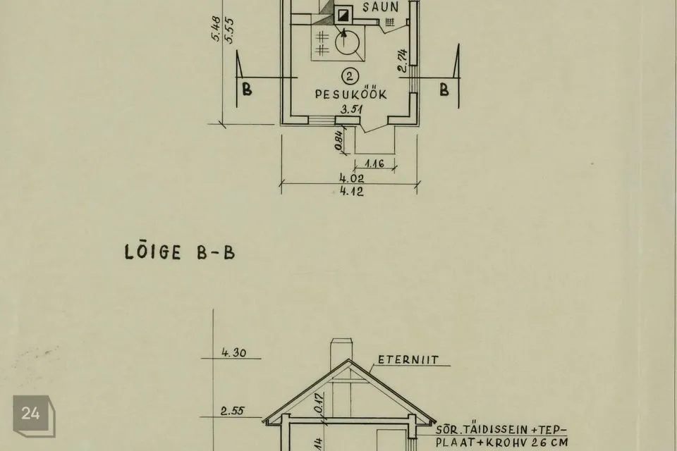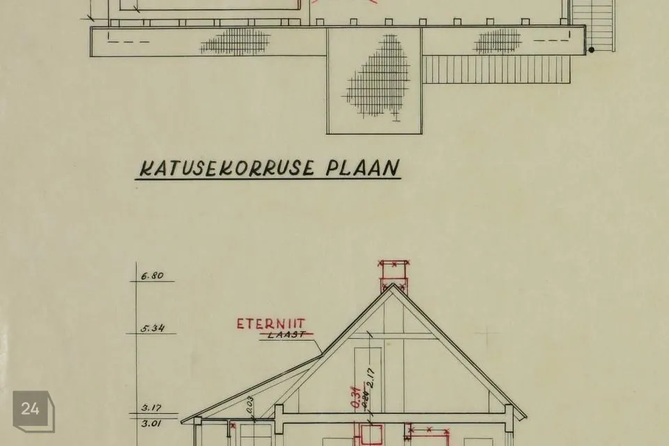 Välisseina liik on puit ning katusekatte materjal on eterniit.