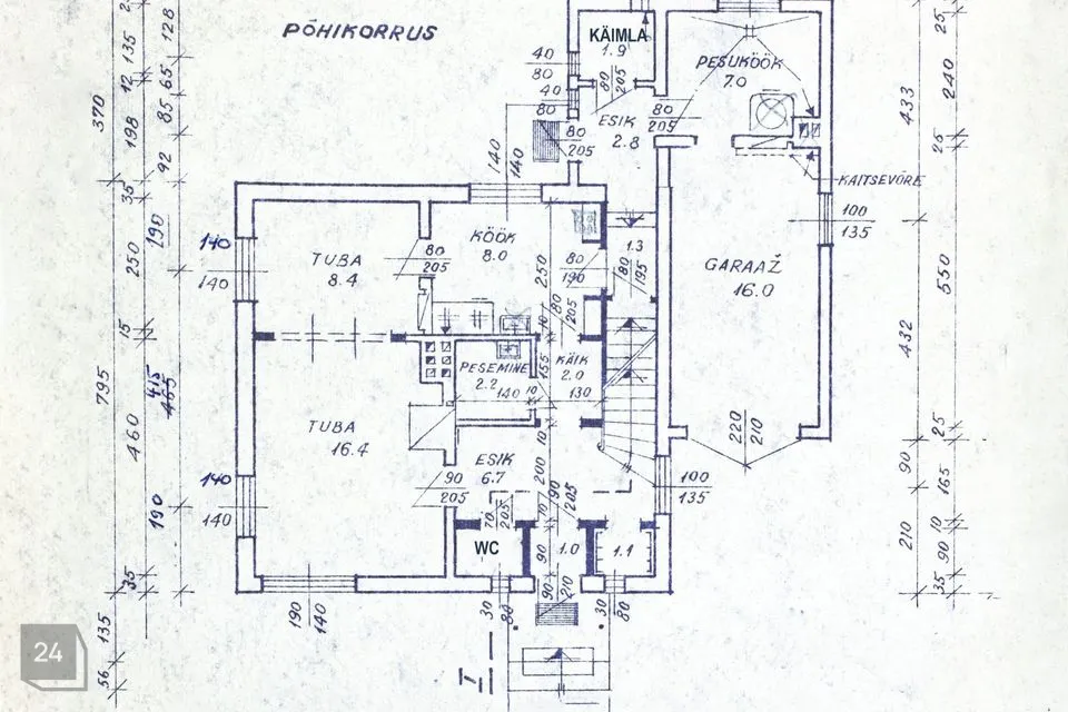 trepihall, kolm tuba, pesukuivatusruum tööruumi osaga