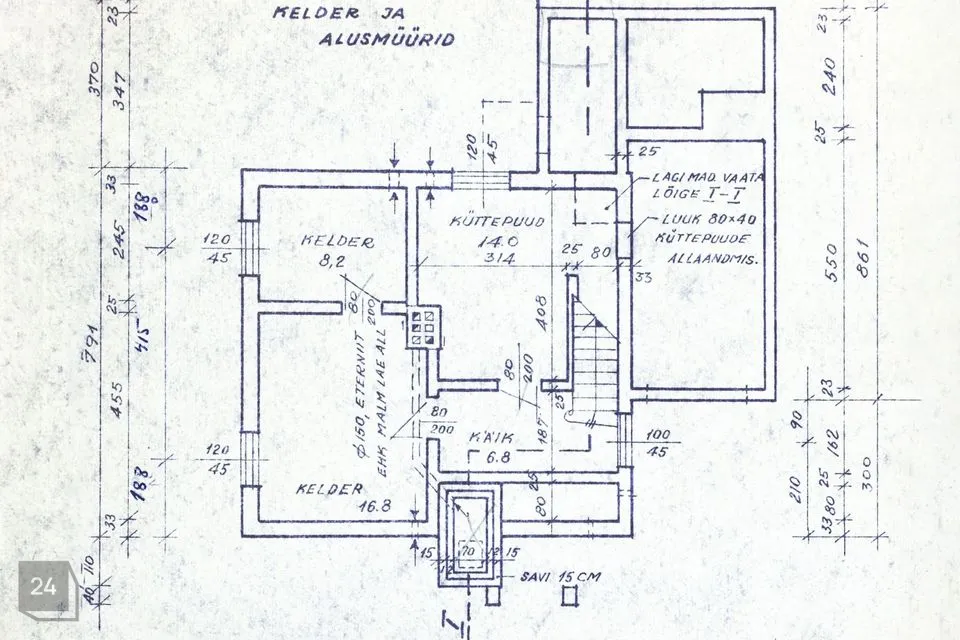 Keldrikorrusel asuvad abiruumid kokku ligikaudu 45,8 ruutmeetril.