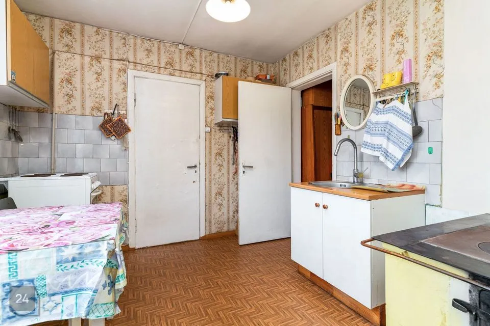tuulekoda, kaks esikut, käik, kaks tuba, köök, vesiklosetiga wc, pesemisruum (dušiga) ning ka vana kuivkäimla, lõpuni ehitamata pesuköök ja garaaž