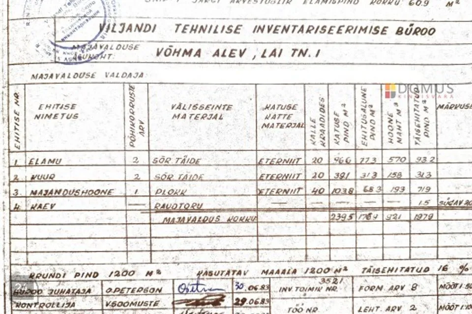Lai tn 1 kinnistu suurus on: 1200 m²