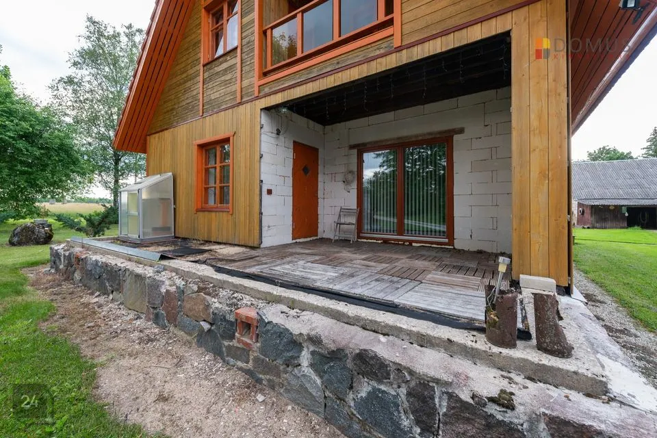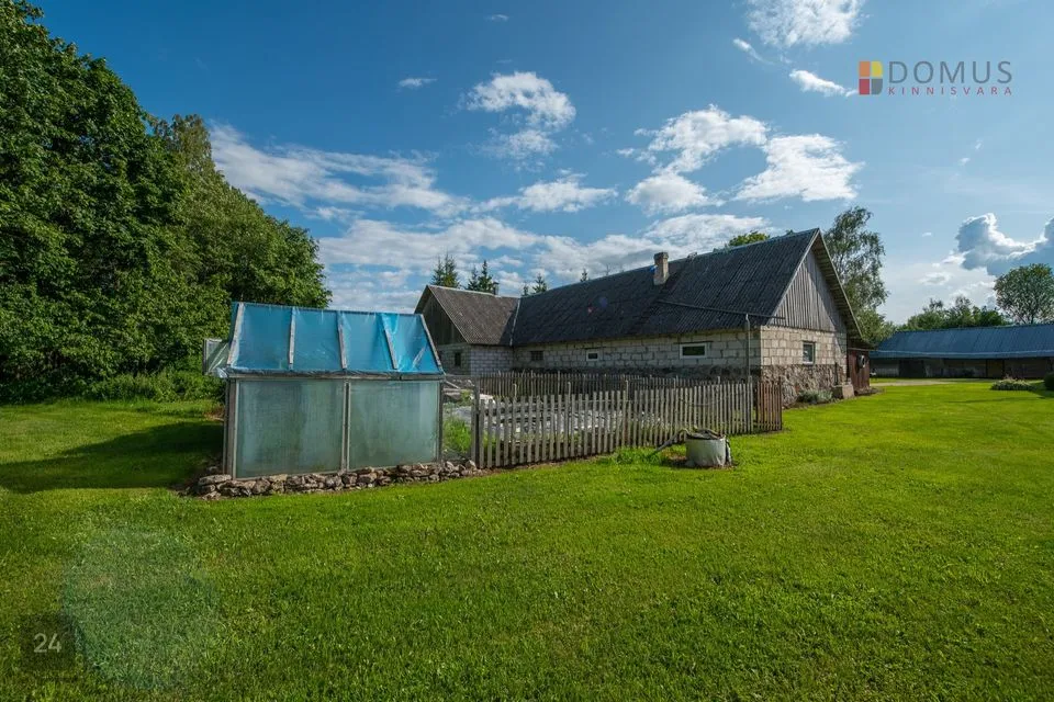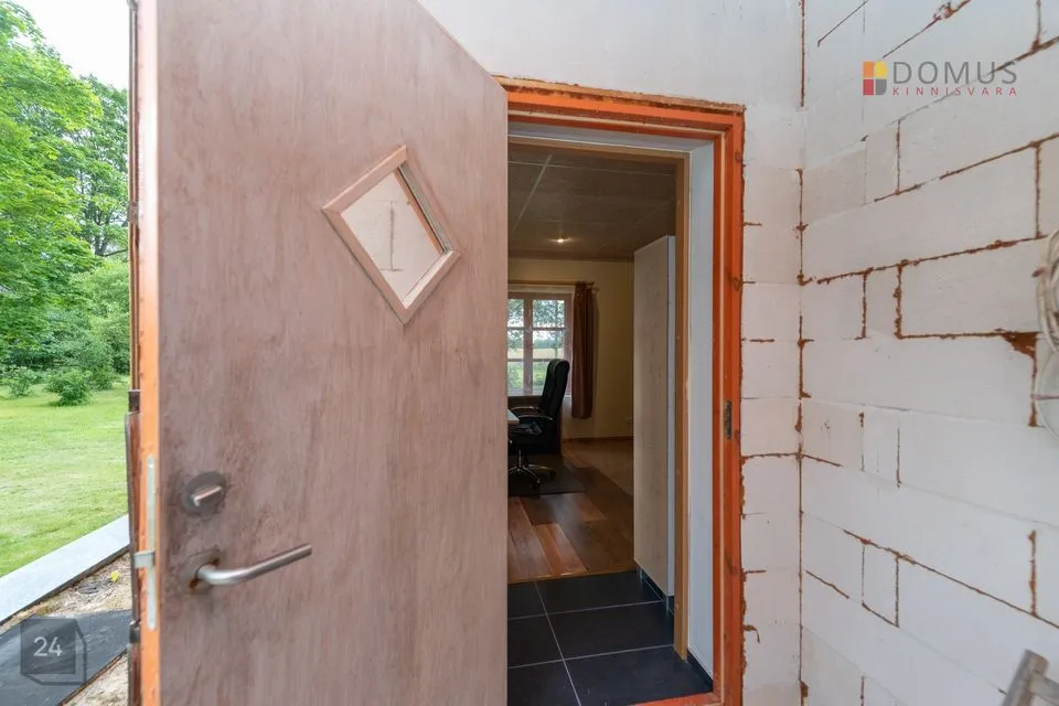 Elumaja: üldpind ≈ 175,3 m², lisaks avatud pooleliolev terrass ≈ 15,8 m² ja planeeritud trepi varikatusealune ≈ 5 m². Renoveeritud 2010 a., vundament maakivist (graniit) + betoonvöö, seinad Aeroc plokist, laudvooder ümber. Renoveerimine vajab lõpetamist. Valmis on ca 90%, tsementkivi (punane) katus.