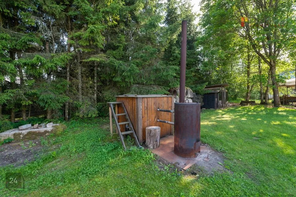 Kinnistul asub veel ka tünnisaun, koeraaedik, väike tiigike ja varjualune grillimiskoht. Maja taga kasvavad õunapuud.