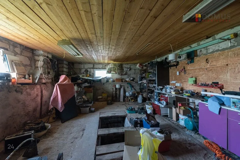 Laut-majandushoone: üldpind ≈ 155 m². Maakivi vundament, seinad tuhaplokist, betoonpõrand, eterniitkatus. Koosneb garaažist (koos kanaliga) ≈ 38 m², tööruum-laost ≈ 41 m², saunaruumidest ≈ 15,6 m², sissepääsu esikust ≈ 10,4 m² ja varikatusealusest hoidlast ≈ 50 m².