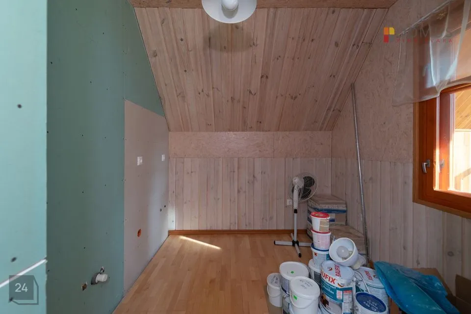 Laed: viimistletud toonitud OSB plaadiga. I korruse tubades paigaldus ripplagedena süvistatavate valgustitega. Abiruumides laekinnitusega valgustid.