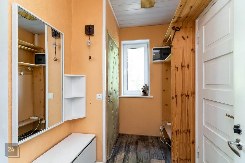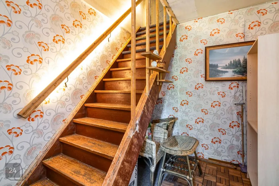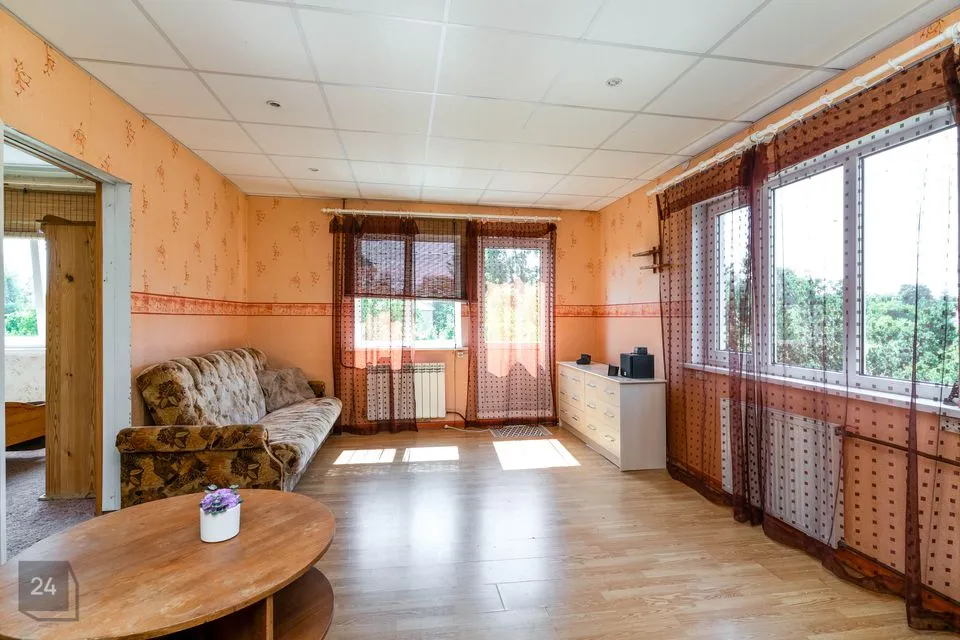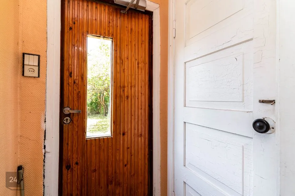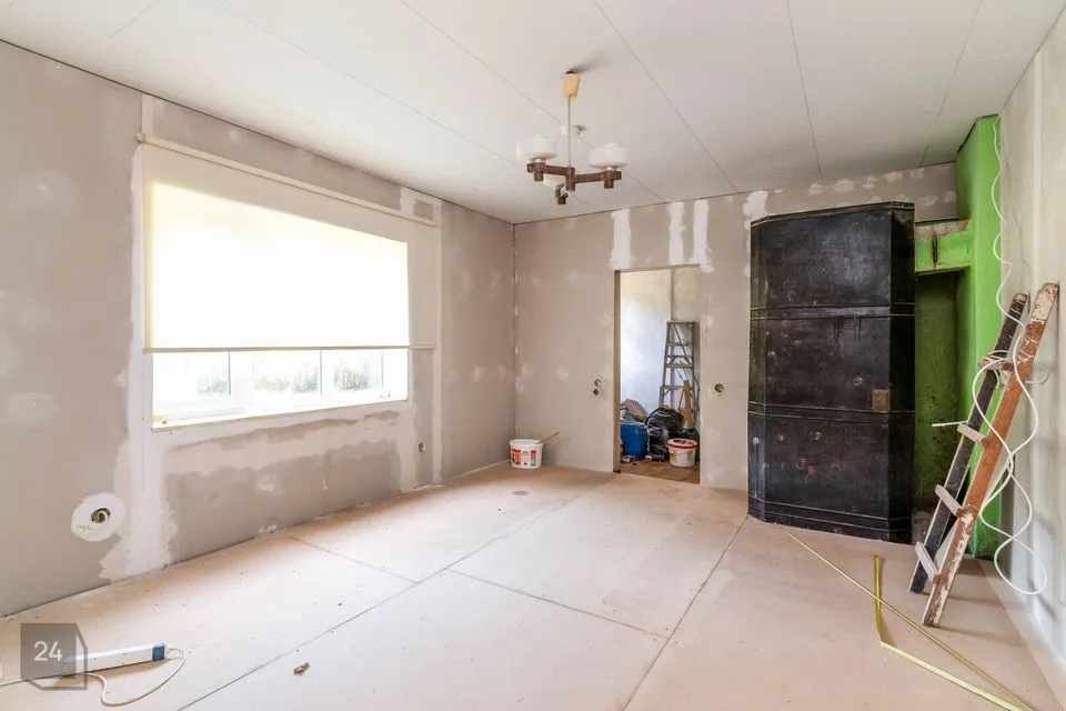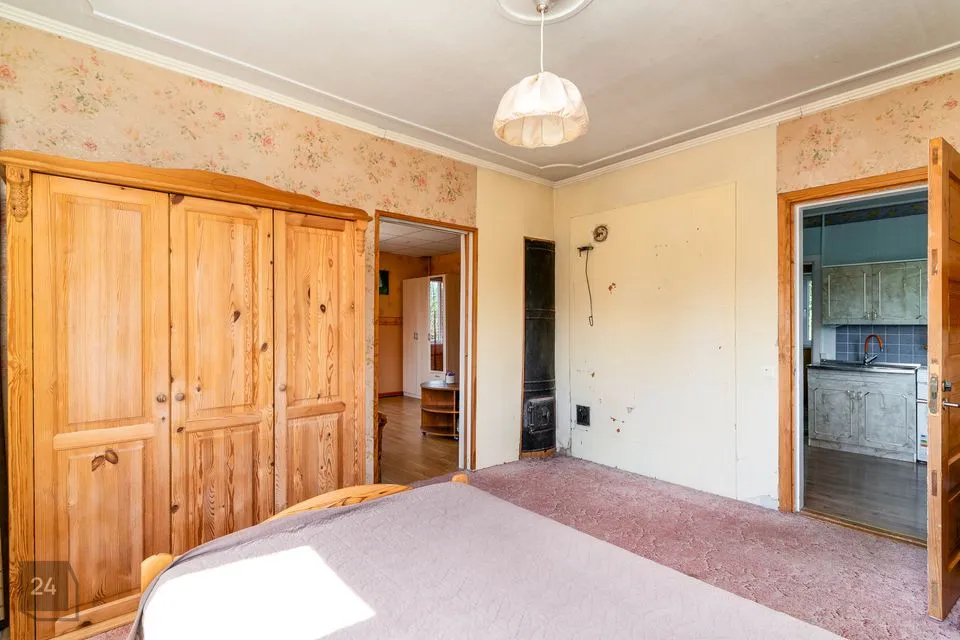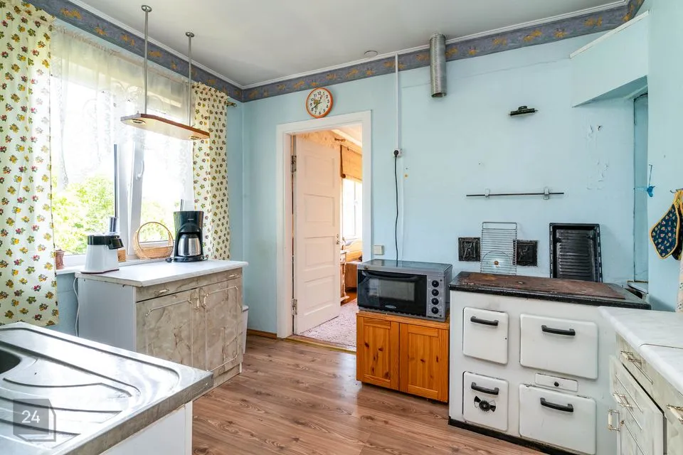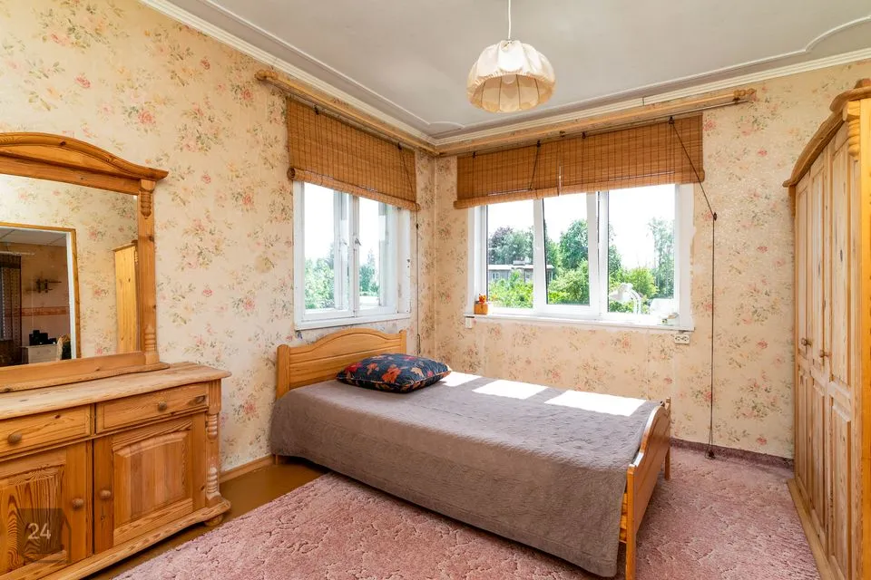 Maja esimene korrus on remondijärgus, sellel korrusel on kaks suuremat tuba, üks väike tuba ja köök. Lisaks on esikust võimalik pääseda kuuri. Esimese korruse sissepääs asub maja tagumises küljes (võimalik ka maja eest läbi esiku). Esikust pääseb kööki, läbi mille otse paikneb üks suurematest tubades. Köögist paremale minnes on väike tuba ja läbi selle edasi suur elutuba. Elutoast on pääs verandale, veranda akende vaade avaneb aeda. Elutoas on kipsseinad ja uus põrand, teised ruumid on täielikult renoveerimata.