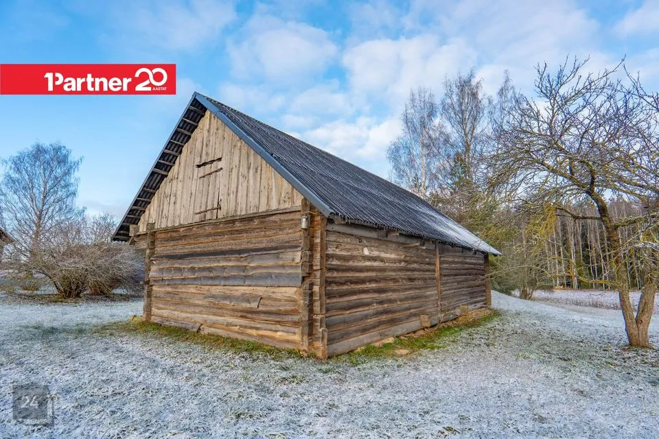 mille ehitusalune pinda on ca 100 m²See hoone on ehitatud uutest palkidest ca 10 aastat tagasi maakivist vundamendile. Põrandad on valatud ning põranda all on 2o cm soojustust. Aknad ja uksed on puidust ning valminud käsitööna.