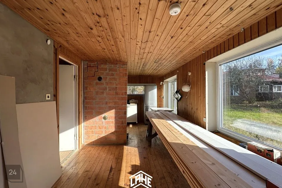Pakkumises on omapärase planeeringuga maja, kus suuremad tööd on juba tehtud. Uus omanik saab valida, kas jätkata renoveerimist hubase kodu või suvituspaiga suunas.