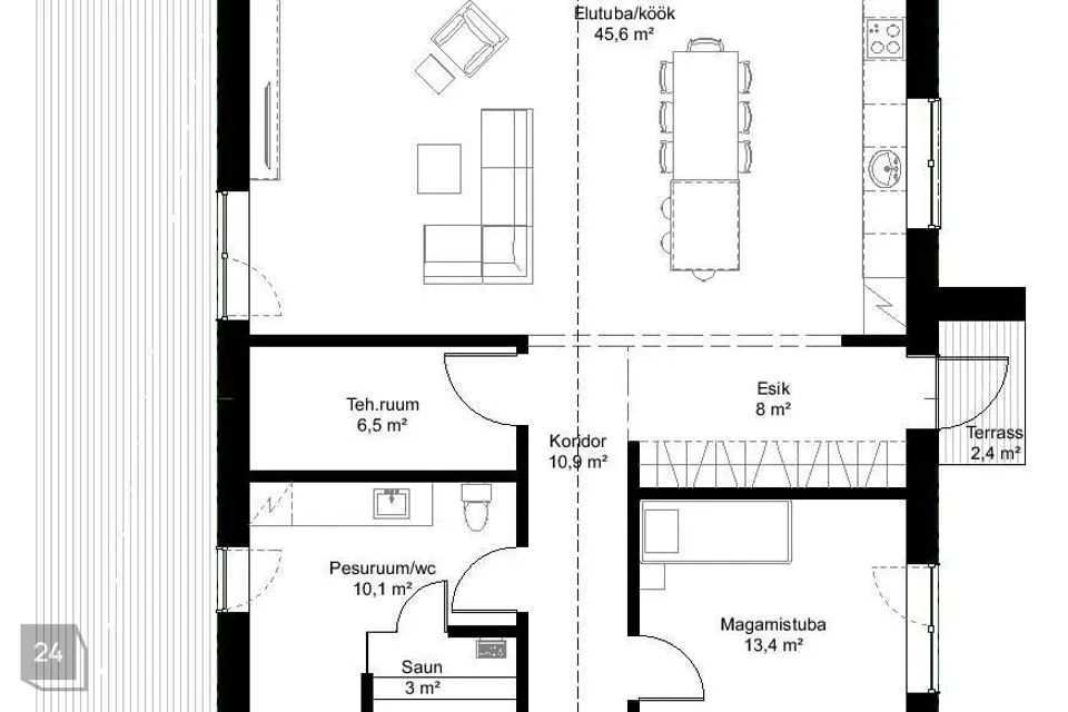 Pildid analoogsest juba valminud majast - ehitajal suured kogemused ja palju varasemalt tehtud töösid. Soovi korral võimalik projekti muuta ja kaasa rääkida materjalide valikul.
