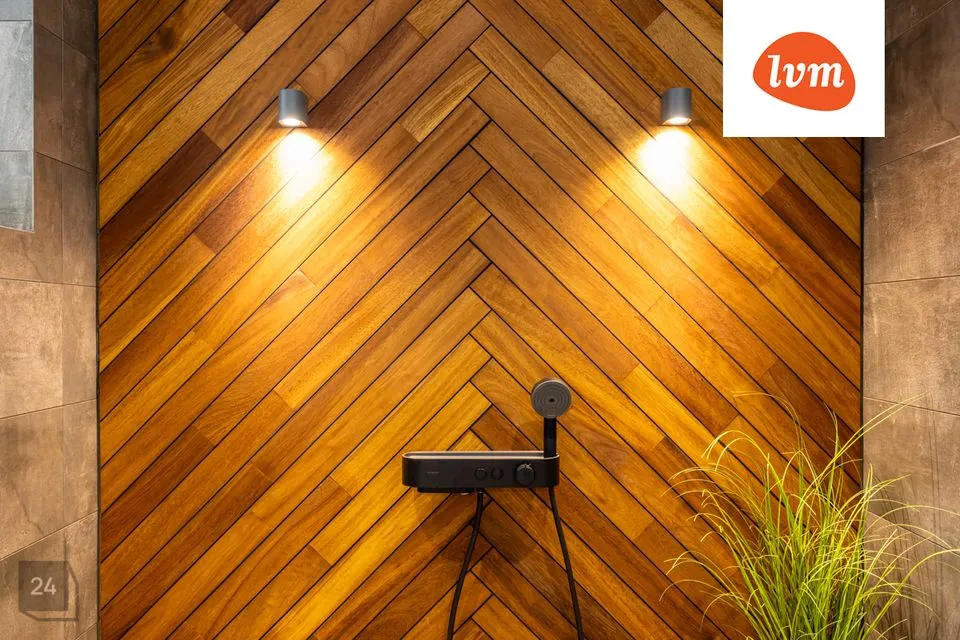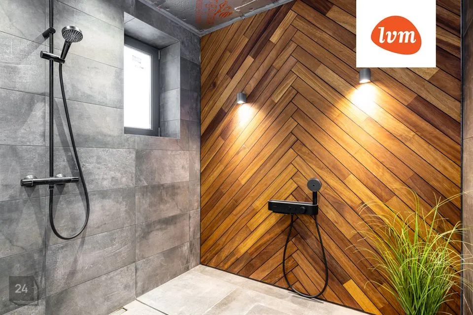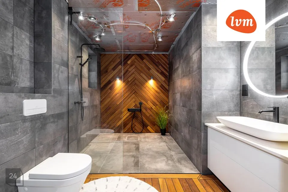 -uus pesuruum, kus põrand on kaetud tiikpuuga