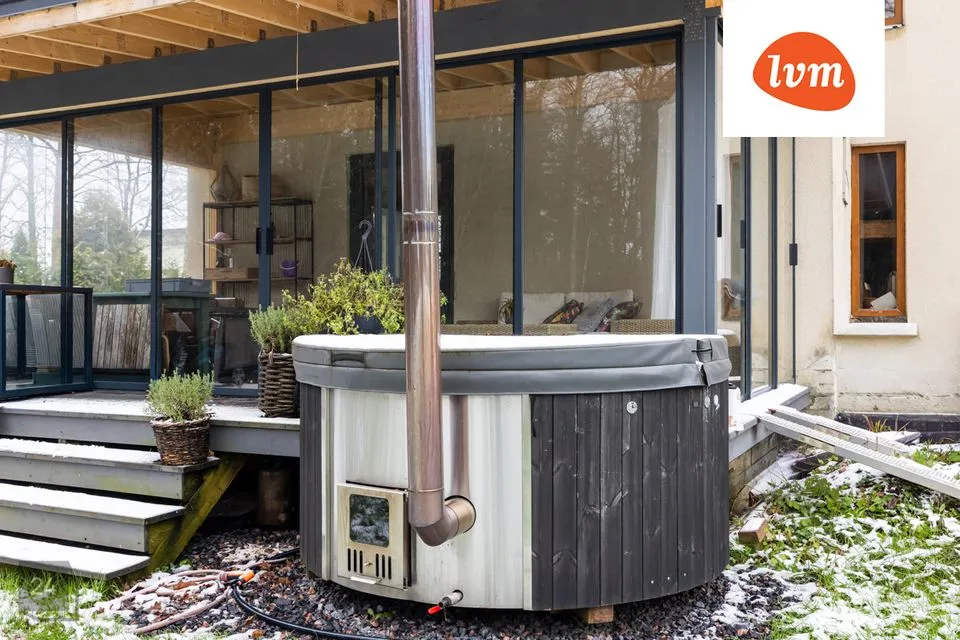 -uus klaasitud terrass, kus on ka mõnus tünnisaun