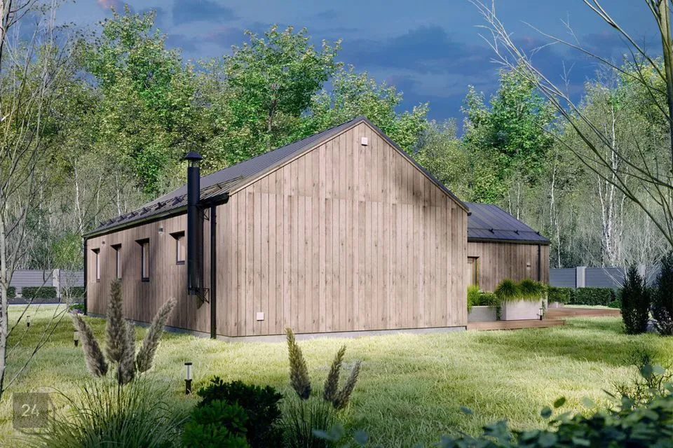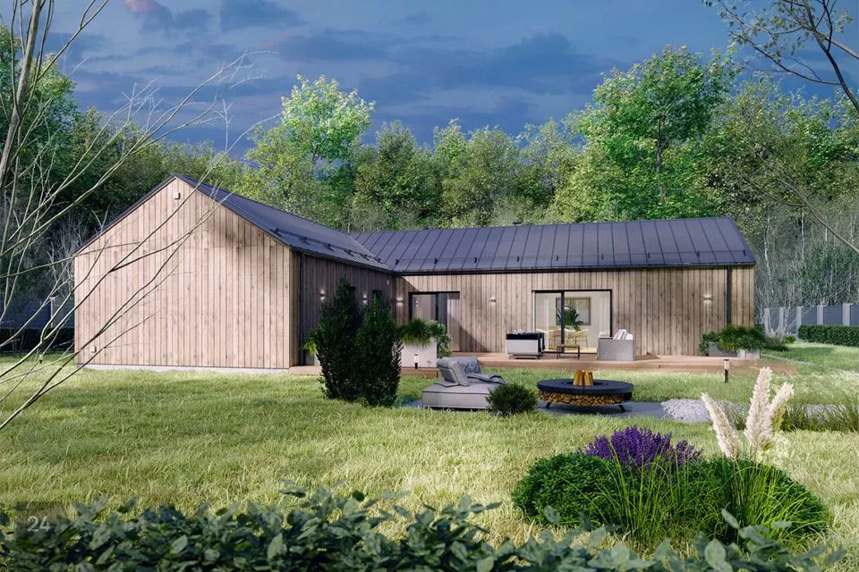 Fassaad on modernne ja ajatu – kombineeritud vertikaalse puitlaudise ja tumedate toonidega aknaraamidega.