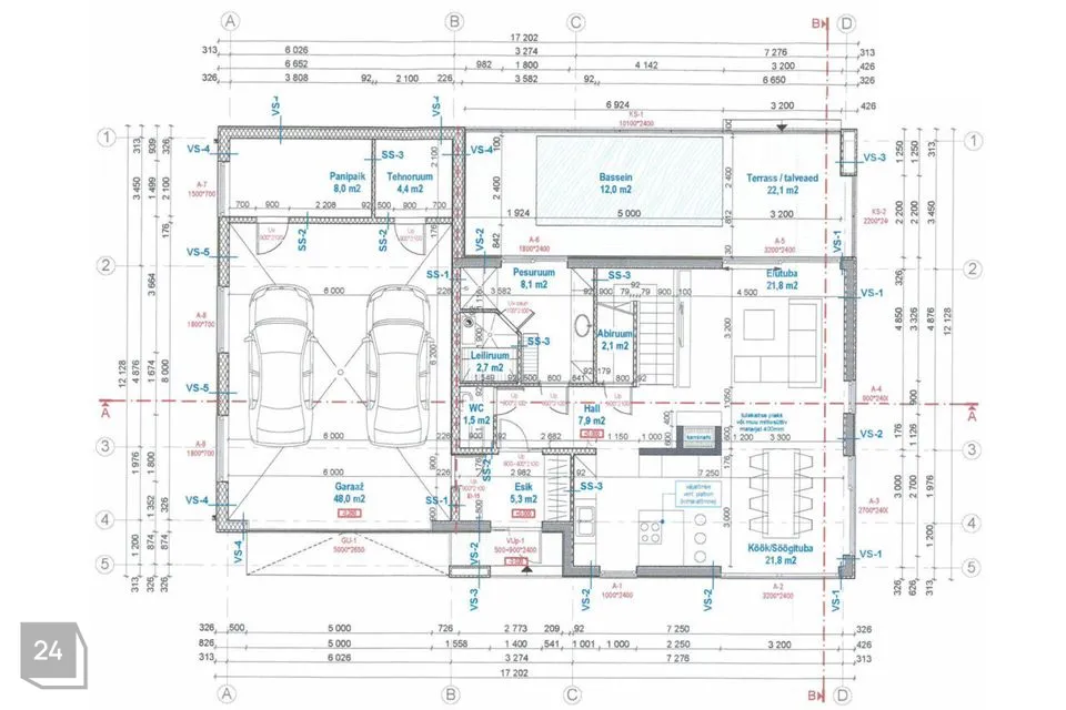 Hoone suletud netopind - 239.2m2 (sisaldab garaaži 56m2)
