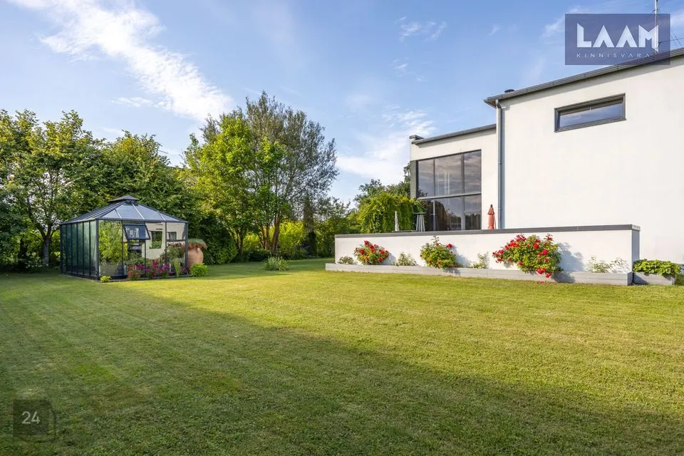 Tegemist on kõrghaljastusega krundiga, mis on piiratud erinevat tüüpi hekkide ja aiaga. Kasvavad viljapuud ja põõsad. Aias on ka 13 m2 suurune moodne Juliana Pavilion Grand Oasis kasvuhoone, mis sobib hästi ka talveaiaks. Maja küljes asub elupuuhekiga piiratud 47 m2 terrass koos aiamööbli ja suure grilliga.