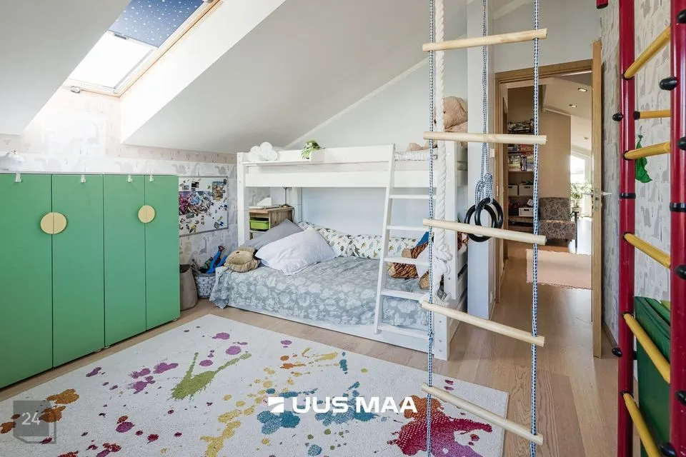 Maja õueala pakub mitmekülgseid võimalusi – siin asub 20 m² suurune suvemaja ja laste jaoks mitmeid atraktsioone. Autovarjualune kaitseb Teie sõidukeid nii lume kui ka vihma eest, tagades mugava ja ohutu parkimise igal ajal.