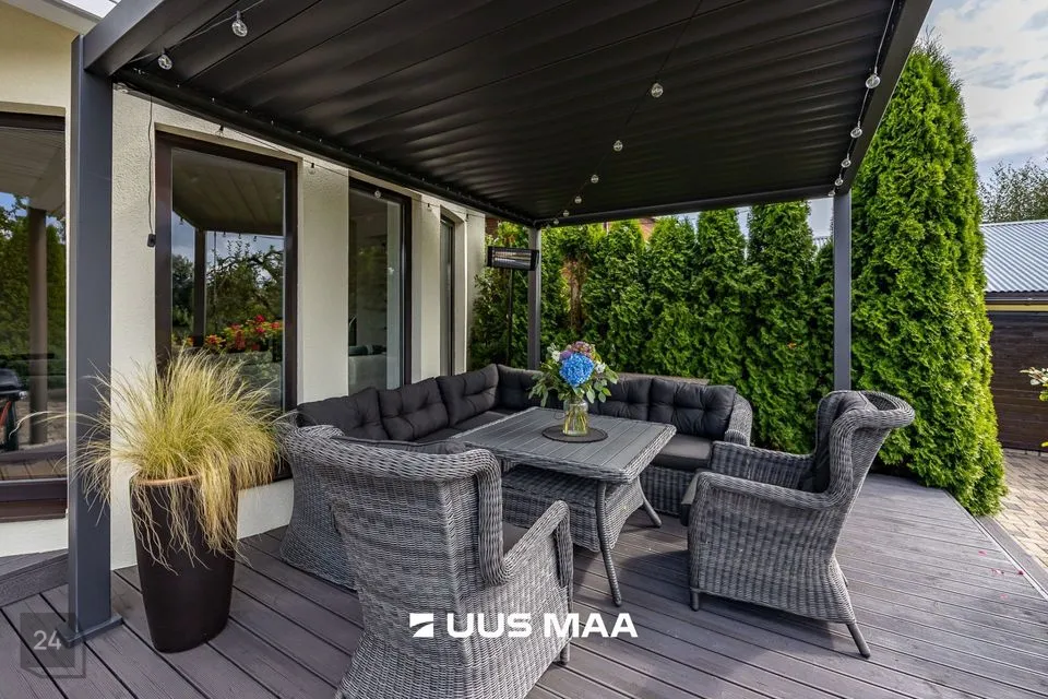 Suurtest, maast laeni akendest paistab majja piisavalt naturaalset valgust. Elutoast pääseb suurele terrassile. Terrassil on mõnus möbleeritud ja valgustatud puhkeala, kus päike paistab kuni loojanguni.
