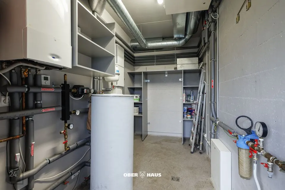 Kivimaja, vesipõrandaküte (iga ruum eraldi reguleeritav), soojustagastusega sundventilatsioon.