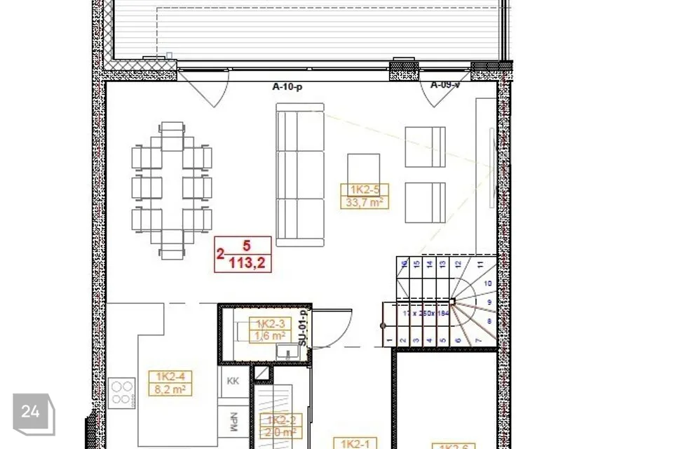 I korrus: avatud köök-elutuba pääsuga terrassile, WC, tehnoruum