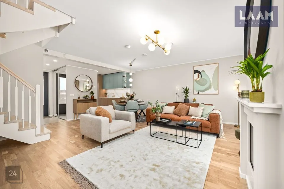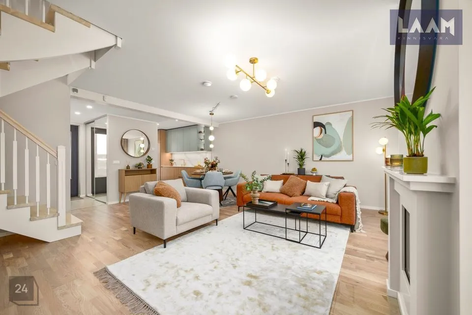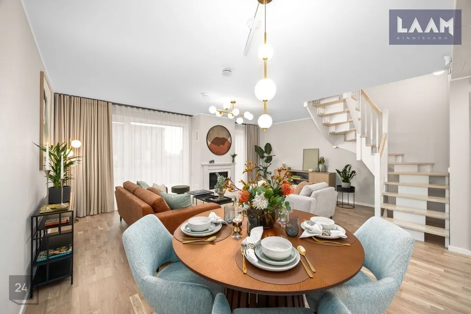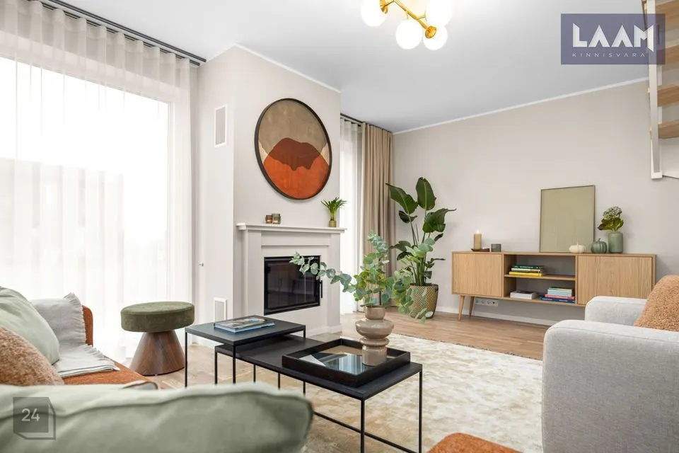 Ridaelamu kroonjuveeliks on esimesel korrusel asuv avar ja valgusküllane elutuba suurusega 36 m2. Privaatse nurgaga köögiala ( 5,9 m2) on ühendatud elutoaga.